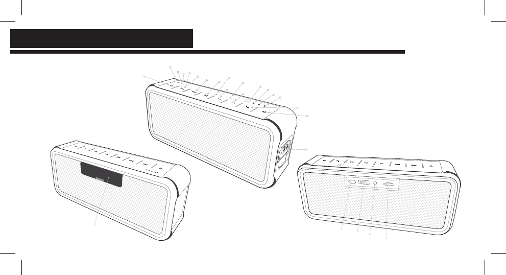 • Open door for access to Micro USB Charging Port; AUX-IN Port; USB Power-Out Port; Micro SD Slot