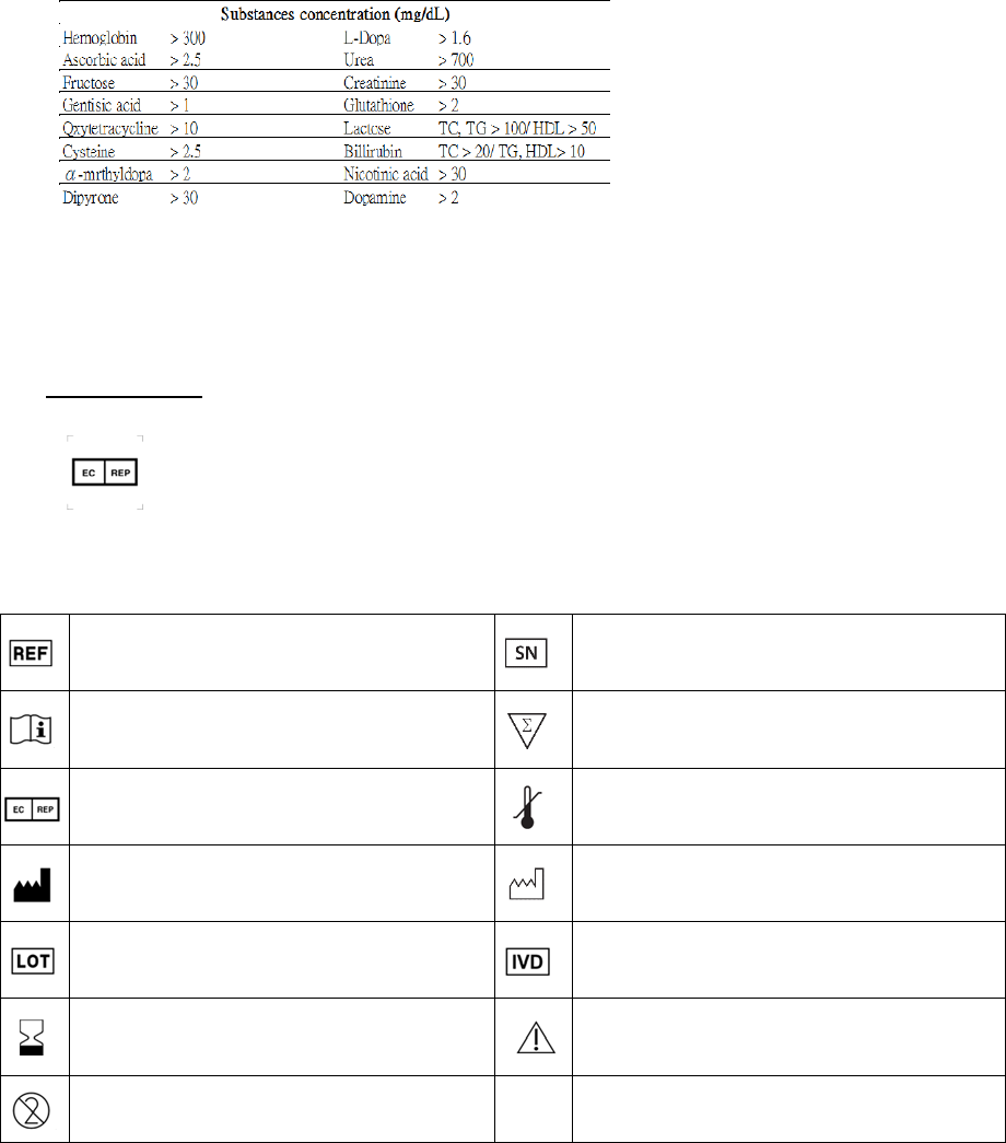 10.Interferences:Thefollowingsubstancesmaycausefalseresultsatlevelsofthebelow.