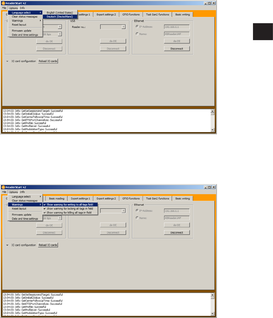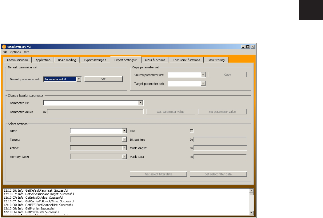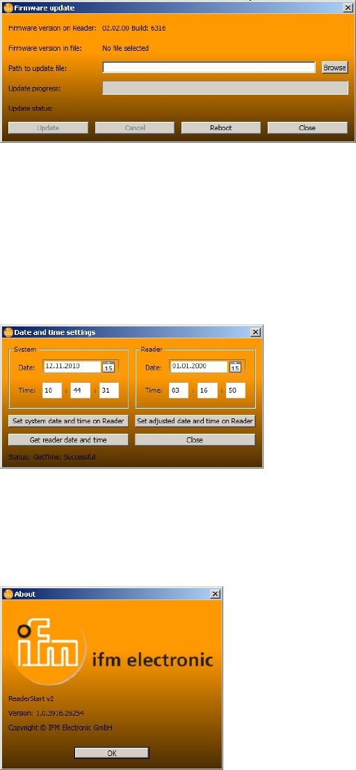 This tab makes it possible to access individual functions of the reader� This includes, along with the func-