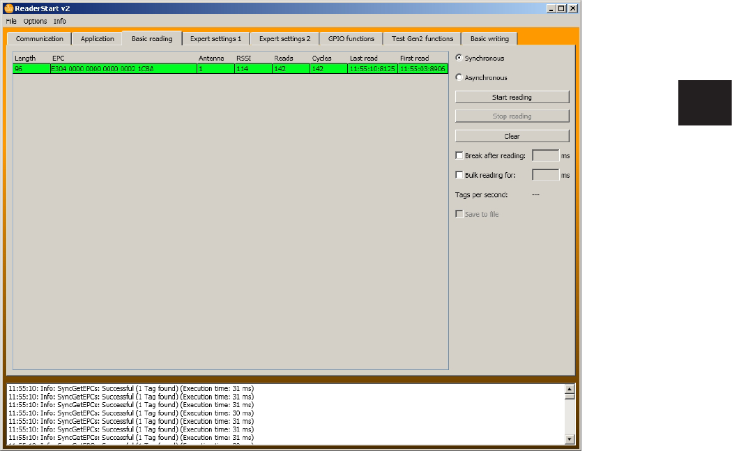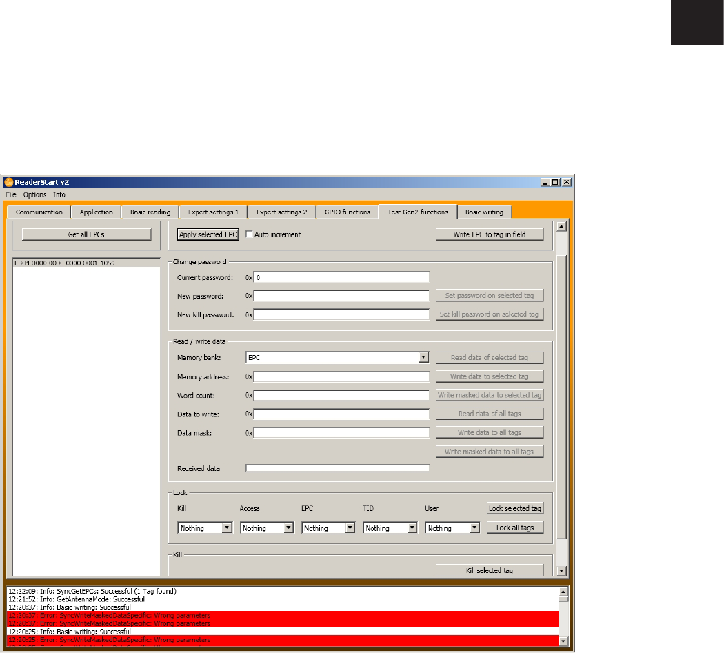 The EPCs from the tags read successfully are displayed in the field below� For the following operations, a