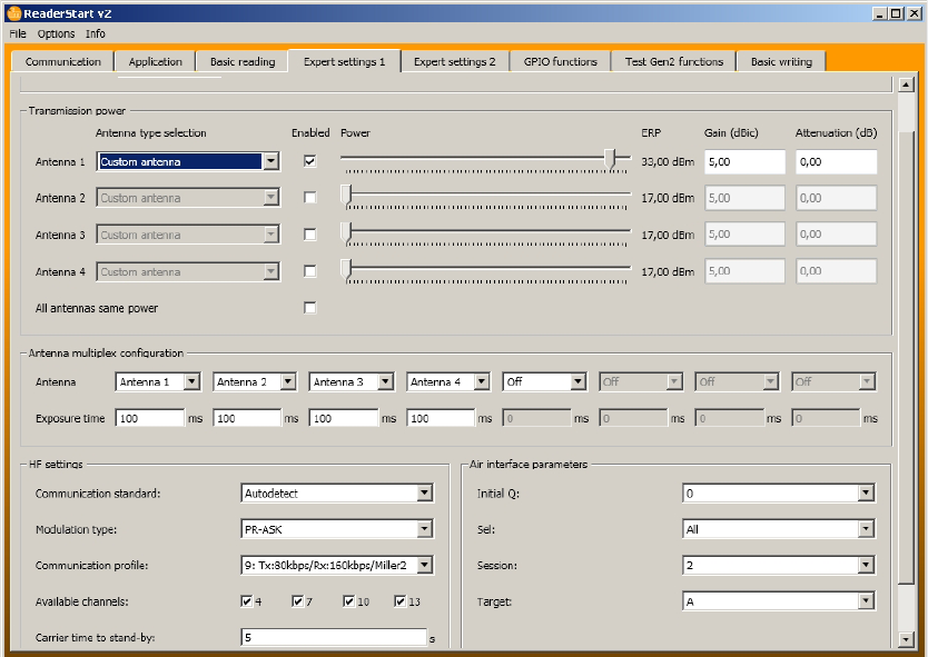 the "Antenna selection" drop-down menu the number of antennas has been restricted, reading will now