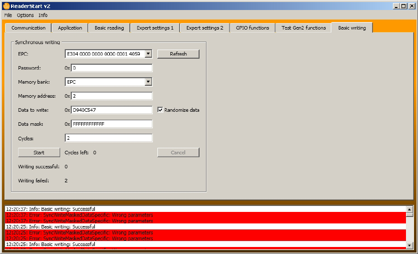 The write event itself can optionally be executed on this tag by pressing the [Write EPC to selected