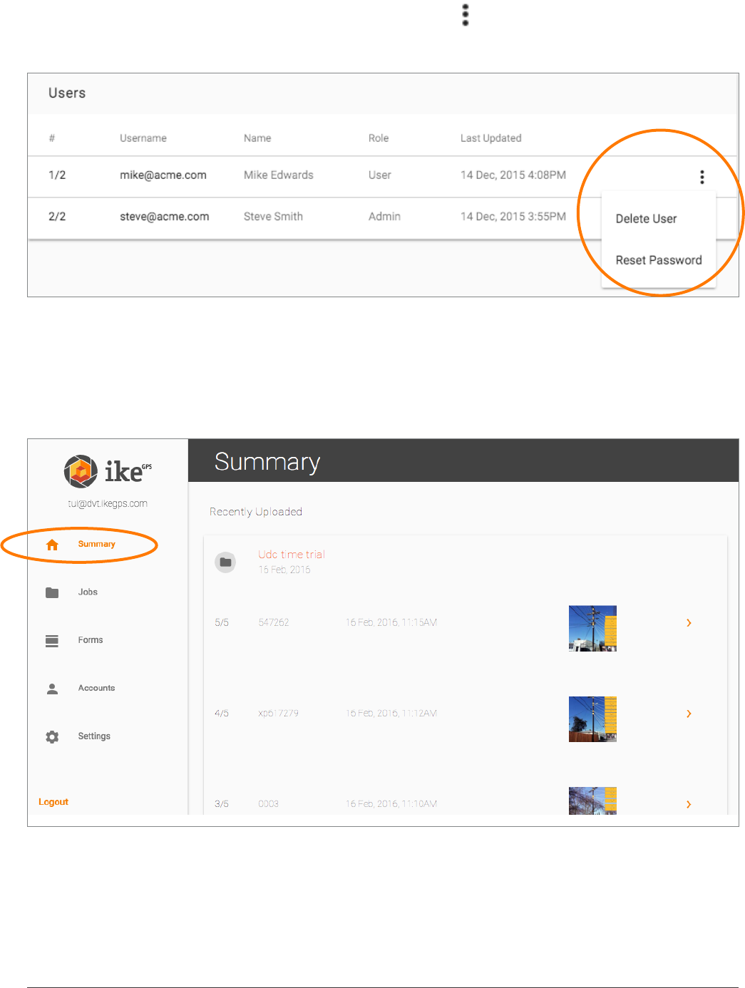 To delete a user or reset a password, click the More icon ( ) to the right of the account and