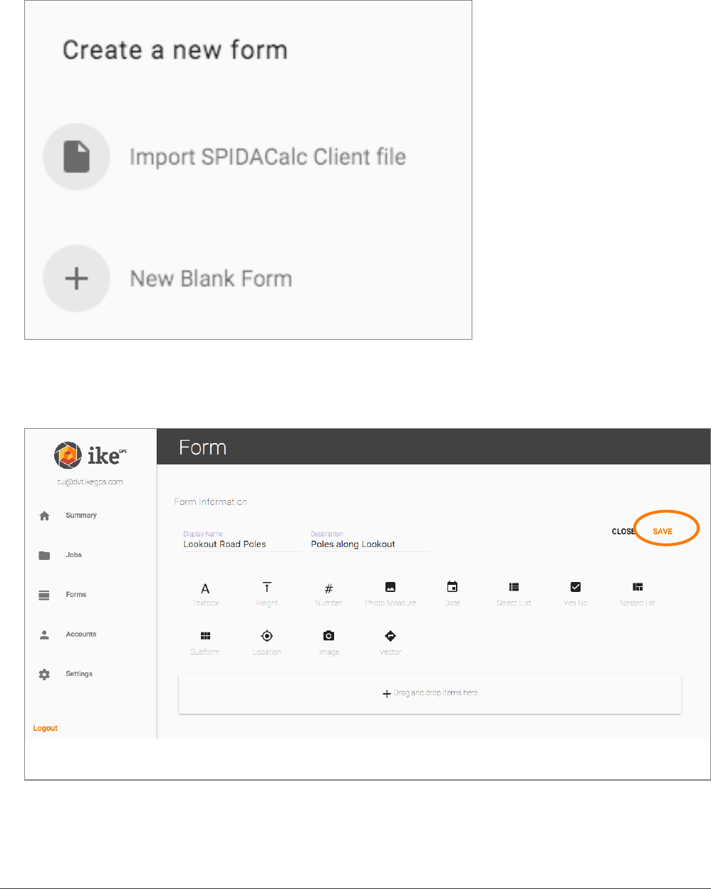 3. When the form is created, click SAVE to make the form available for download onto the IKE