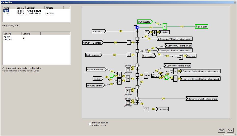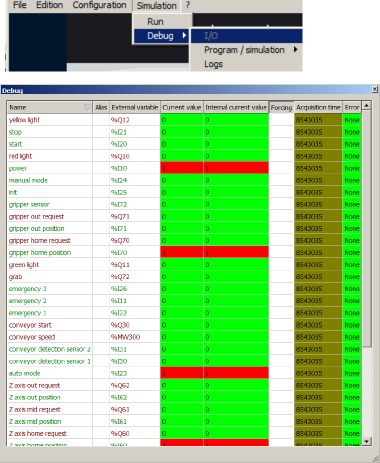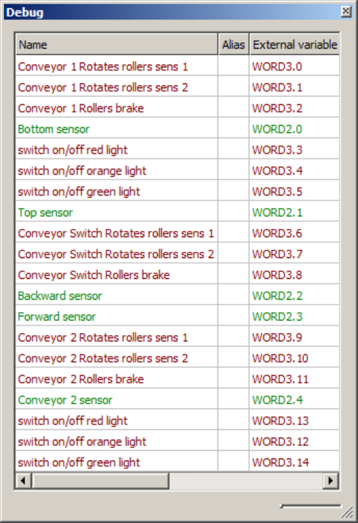 Our sample use 5 digital inputs and 15 digital outputs. Arbitrary, inputs I0.0 to I0.4 and