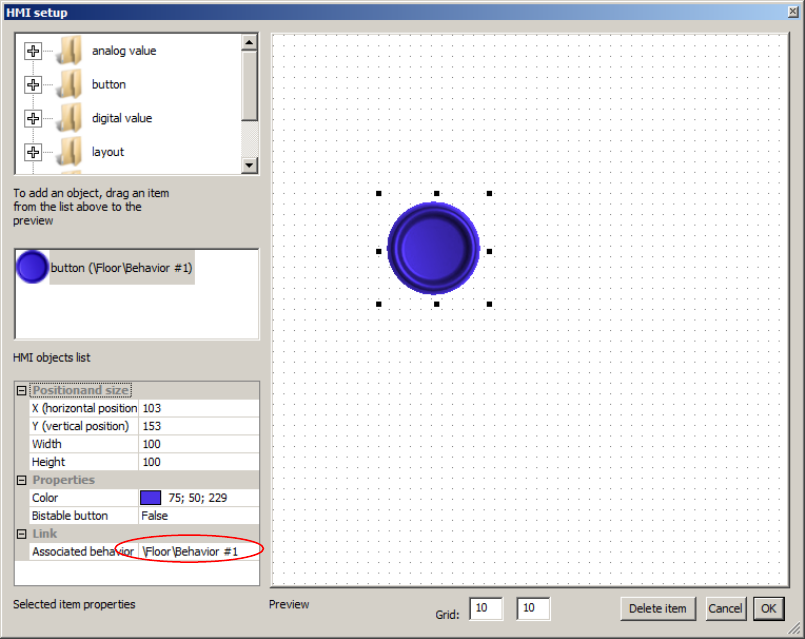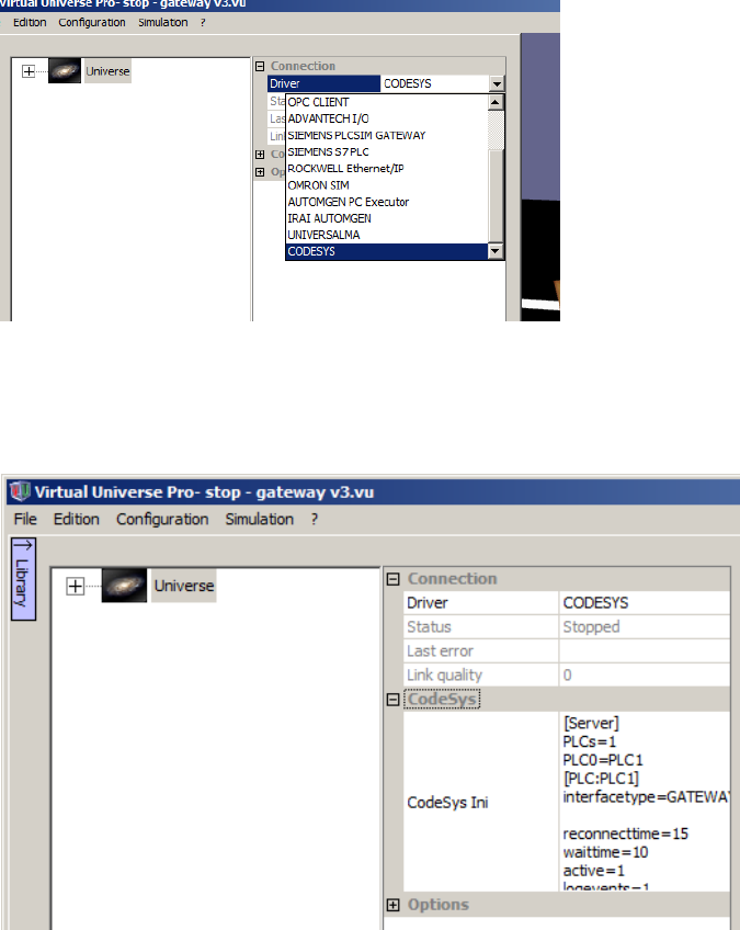 item have to be filled with the CoDeSys connection setup as defined in the INI CodeSys