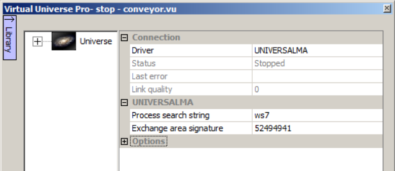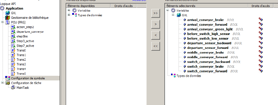 The variables of the CoDeSys project which must be read or written by Virtual Universe