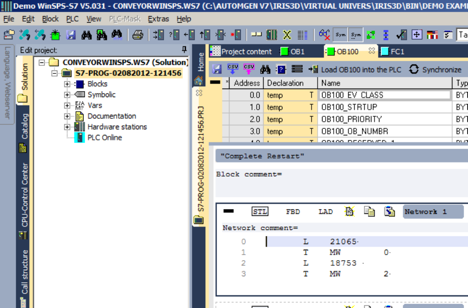 initialization is made only one time at program startup (use of OB100 STEP7 block).
