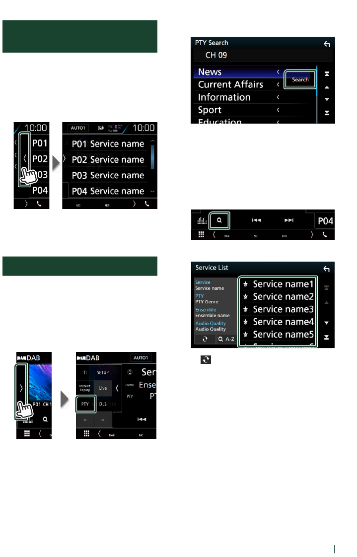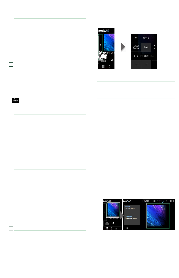 During radio source in AUD mode, switches to broadcast stations received by the