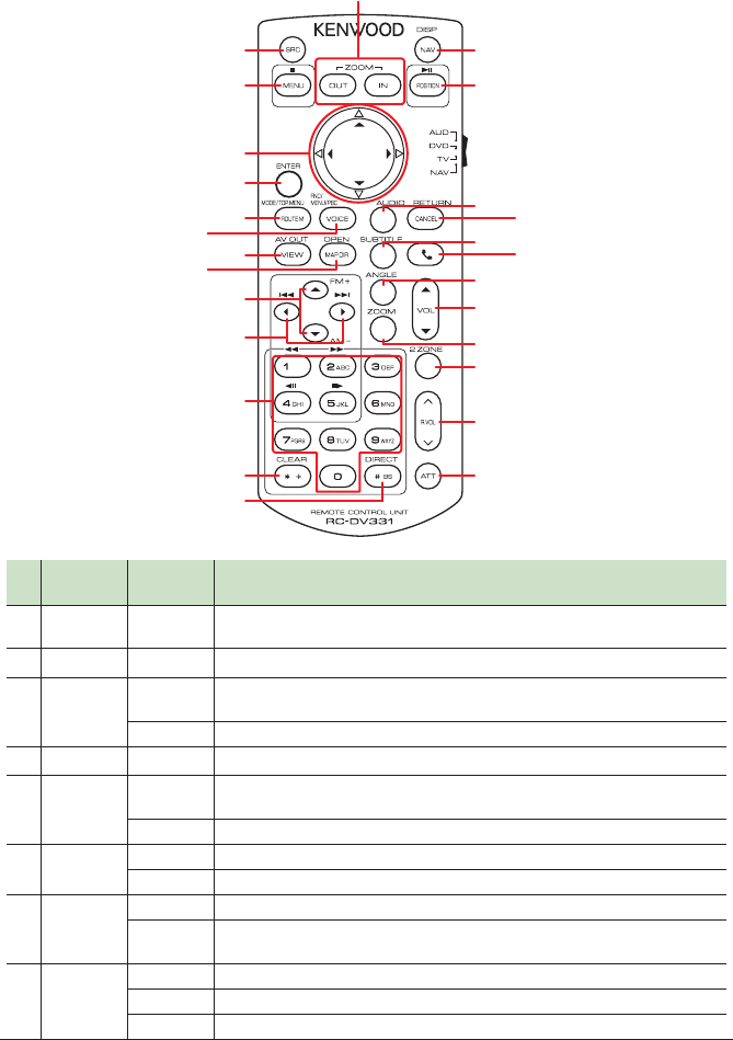 MAP DIR AUD, DVD Switches the display angle each time it is pressed.