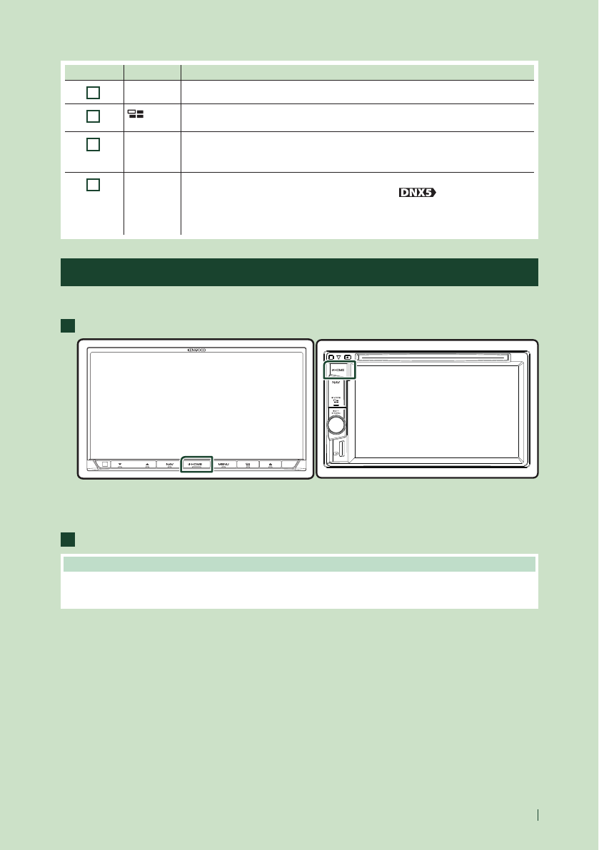 - HOME screen descriptions