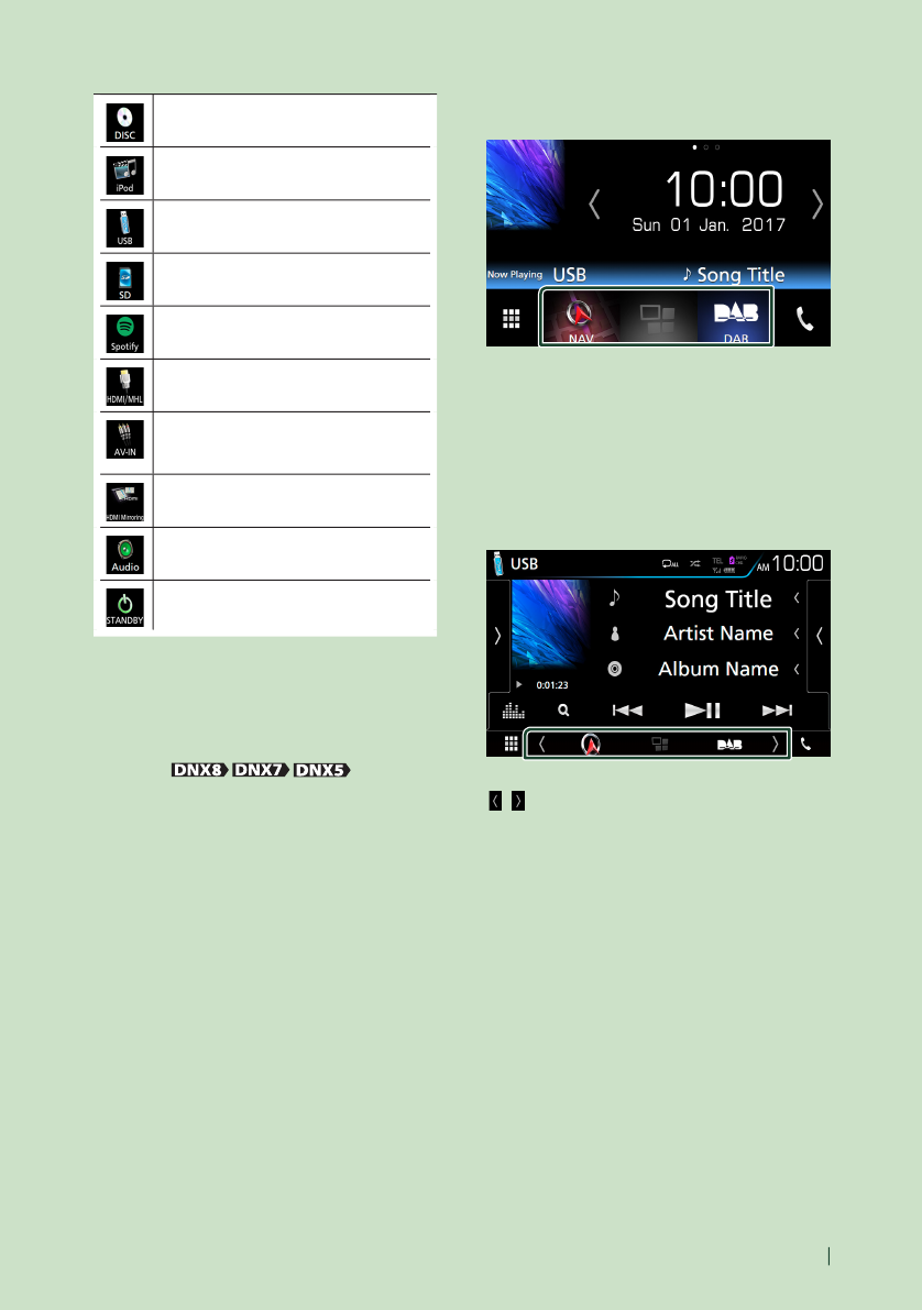- Source selection screen descriptions