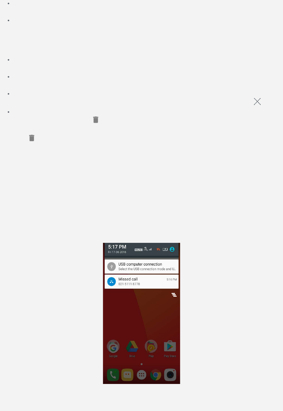 To dismiss all notifications, tap at the bottom of the Notification panel.
