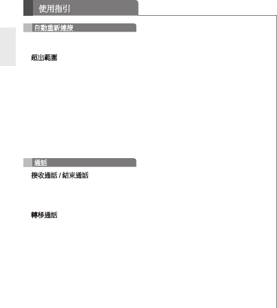 如果使用藍牙TM耳機時開得太大聲,可能會令聽覺受到永久性的傷害。 請將音量設定