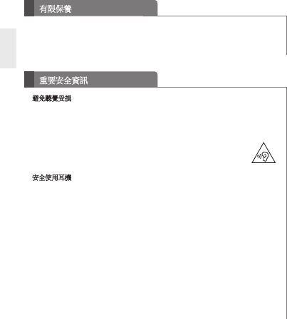 如果您感到有耳鳴或說話模糊不清,請停止聆聽並檢查您的聽覺。 音量愈大,影響聽