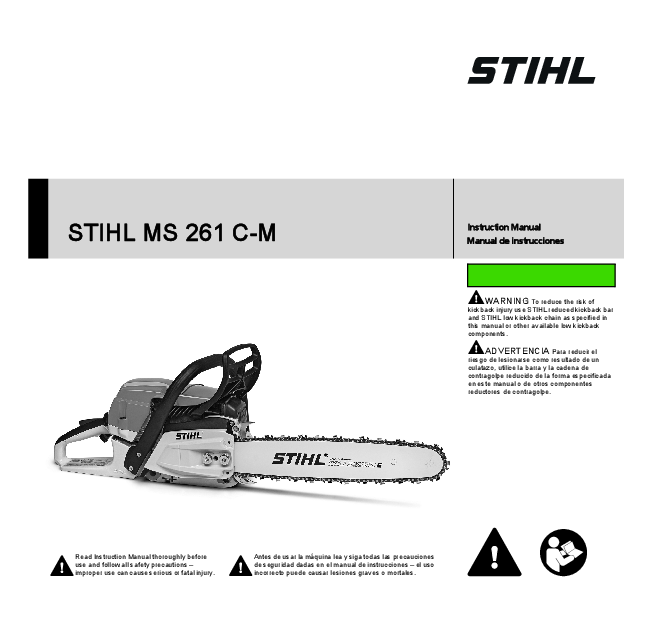 This Instruction Manual refers to a STIHL chain saw, also called a machine in this Instruction Manual. Pictograms The meanings of the pictograms attached to or embossed on the machine are explained in this manual. Depending on the model concerned, the following pictograms may be on your machine. Symbols in Text Many operating and safety ...
