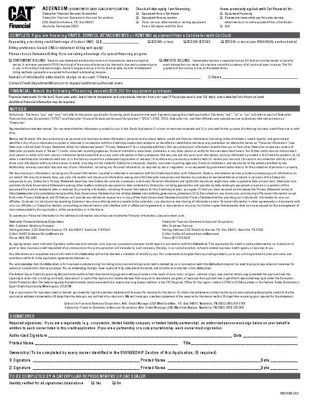 COMPLETE if you are financing PARTS, SERVICE, ATTACHMENTS or RENTING equipment from a Cat dealer with Cat Card