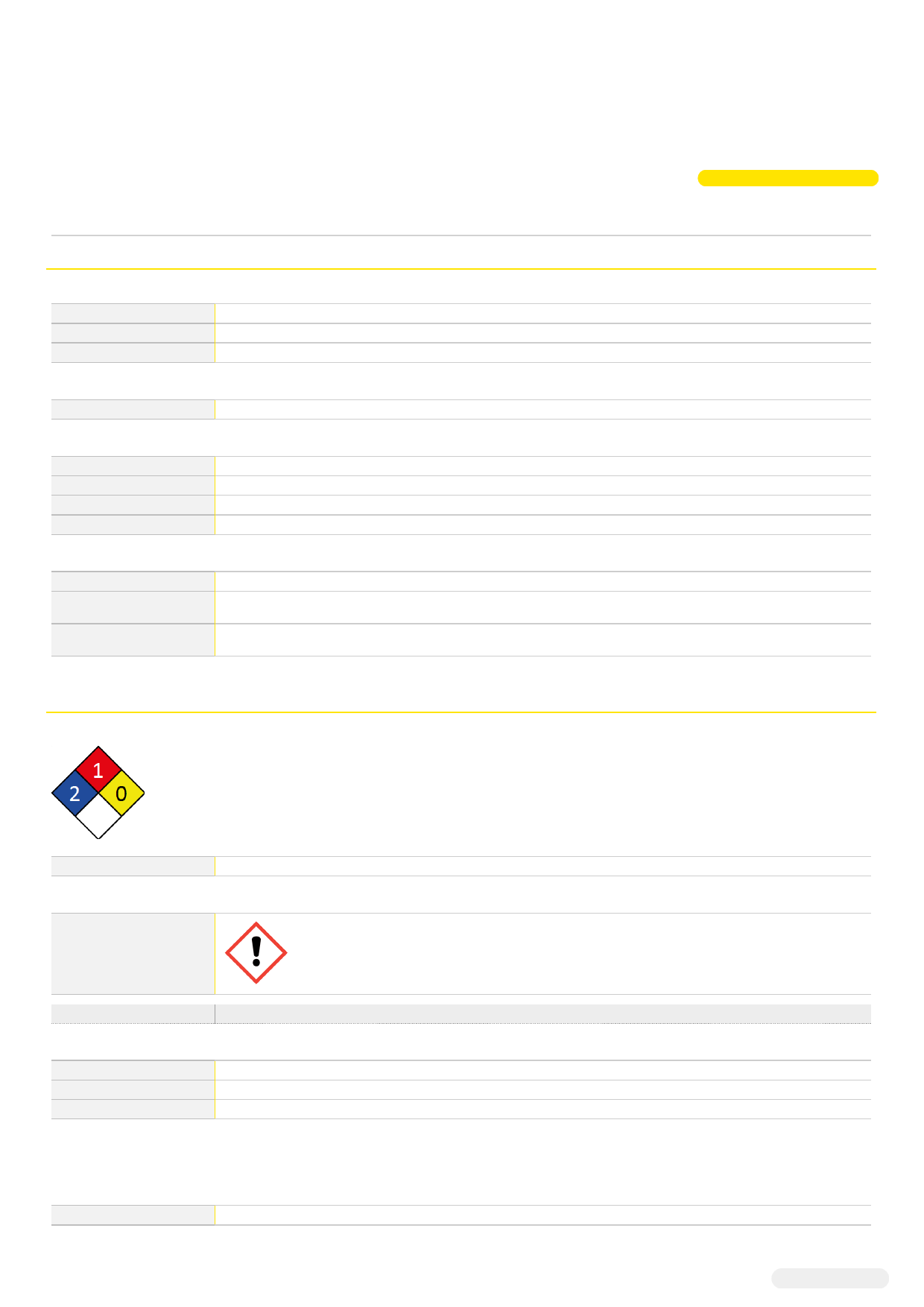 Note: The hazard category numbers found in GHS classification in section 2 of this SDSs are NOT to be used to fill in the NFPA 704 diamond. Blue = Health Red = Fire Yellow = Reactivity White = Special (Oxidizer or water reactive substances)
