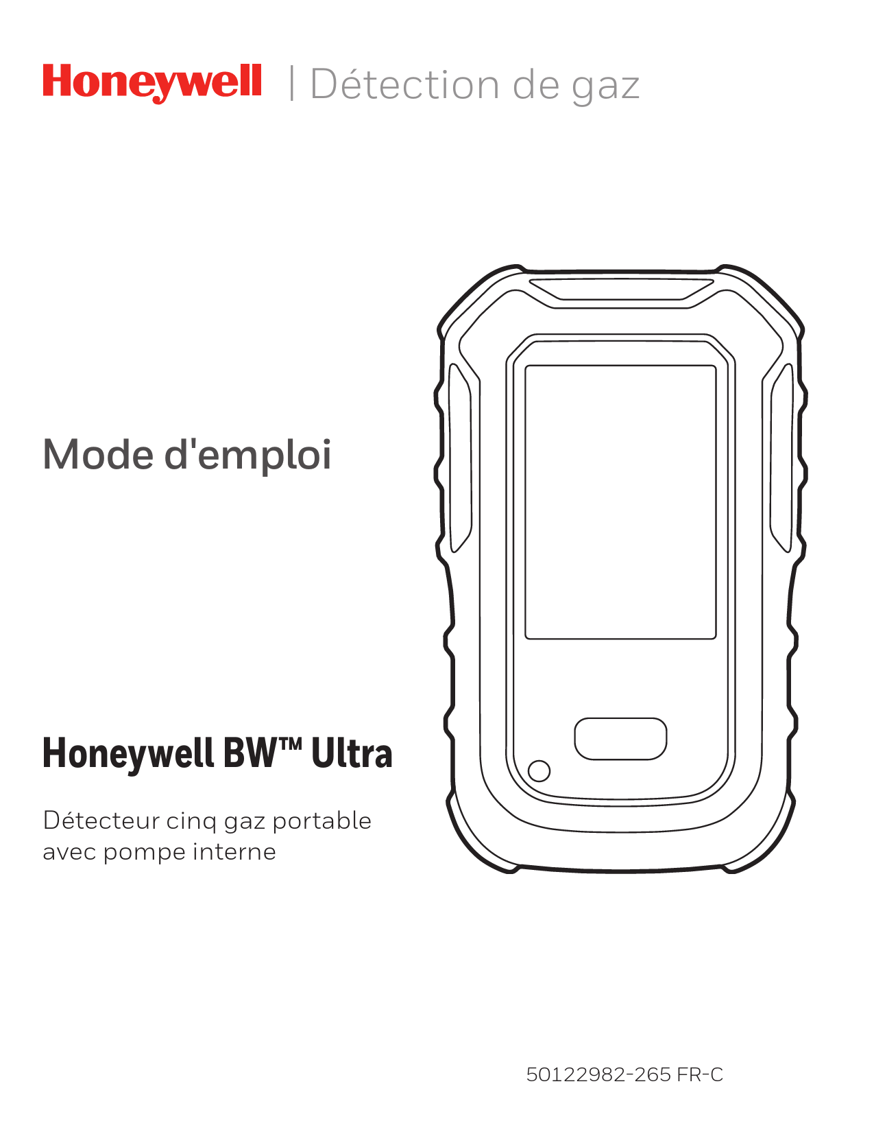 | Détection de gaz Mode d'emploi Honeywell BWTM Ultra Détecteur cinq gaz portable avec pompe interne 50122982-265 FR-C Garantie limitée et limite de responsabilité BW Technologies by Honeywell LP (Honeywell) garantit ce produit contre tout vice de pièces et de main-d'oeuvre dans le cadre d'une utilisation et d'un entretien normaux, pour une durée de trois ans à compter de la date d'expédition à l'acheteur. Cette garantie concerne uniquement la vente de produits neufs à l'acheteur d'origine. Les obligations de Honeywell au titre de la garantie se limitent, au choix de Honeywell, au remboursement du prix d'achat, à la réparation ou au remplacement d'un produit défectueux retourné dans le délai de garantie à un centre de service après-vente agréé par Honeywell. La responsabilité de Honeywell dans le cadre de la garantie n'excédera en aucun cas le prix d'achat effectivement payé par l'acheteur pour le produit. La présente garantie n'inclut pas : · les fusibles, les piles jetables ou le remplacement périodique des pièces en raison d'une usure découlant de l'utilisation normale du produit ; · tout dommage ou défaut attribuable à une réparation du produit par une personne autre qu'un distributeur agréé, ou à l'installation de pièces non autorisées pour ce produit ; · tout produit qui, de l'avis de Honeywell, a fait l'objet d'une utilisation abusive, d'une modification, de négligence, ou de dommages accidentels ou liés à des conditions d'utilisation ou de manipulation anormales. Dans la mesure où certains pays et États n'autorisent pas les limitations de garantie implicite, ni les exclusions ou limitations pour dommages directs ou indirects, il se peut que les limitations et les exclusions de cette garantie ne s'appliquent pas à tous les acheteurs. Si pour une quelconque raison, une disposition de la présente garantie était jugée comme étant illégale ou inapplicable par une autorité compétente, cette disposition serait réputée inapplicable et n'affecterait pas la validité et l'application des autres dispositions. Enregistrement de la garantie www.honeywellanalytics.com/support/productregistration Les obligations définies dans la présente garantie sont conditionnées par les éléments suivants : · Qualité de l'entreposage, de l'installation, de l'étalonnage, de l'utilisation, de l'entretien et respect des instructions du manuel et de toute autre recommandation applicable de Honeywell. · Notification rapide à Honeywell de la part de l'acheteur en cas de problème et, le cas échéant, mise à disposition du produit pour correction. Aucun produit ne sera retourné à Honeywell avant réception par l'acheteur des instructions d'expédition de la part de Honeywell. · Honeywell pourra exiger à tout moment la production d'une preuve d'achat (facture d'origine, acte de vente ou bordereau de marchandises), afin de déterminer que le produit est bien couvert par la garantie. L'ACHETEUR ACCEPTE QUE LA PRÉSENTE GARANTIE LUI EST EXCLUSIVE ET TIENT LIEU DE TOUTE AUTRE GARANTIE, EXPLICITE OU IMPLICITE, Y COMPRIS (LISTE NON EXHAUSTIVE) TOUTE GARANTIE IMPLICITE DE QUALITÉ MARCHANDE OU D'ADÉQUATION À UN USAGE PARTICULIER. HONEYWELL NE POURRA ÊTRE TENU RESPONSABLE D'AUCUN DOMMAGE PARTICULIER, INDIRECT, ACCIDENTEL OU CONSÉCUTIF, NI D'AUCUN DÉGÂT OU PERTE DE DONNÉES, QUE CE SOIT À LA SUITE D'UNE INFRACTION AUX OBLIGATIONS DE LA GARANTIE OU SUR UNE BASE CONTRACTUELLE, EXTRACONTRACTUELLE OU AUTRE. Table des matières Avant de commencer......................................................................................... 1 À propos de cette publication 1 Marques déposées 1 Introduction 1 Contenu de la boîte 1 Gaz contrôlés 1 Informations sur la sécurité 2 Poisons du capteur et Contaminants 3 Symboles internationaux 3 Mise en route....................................................................................................... 4 Aspect 4 Écran principal.4 Icônes de l'écran 4 Alarmes 5 Opérations du détecteur................................................................................... 6 Activer le détecteur 6 Activer le rétroéclairage 6 Désactiver le détecteur 6 Naviguer dans le menu 6 Afficher les informations générales du détecteur 6 Réinitialiser les mesures VME ou VLE 6 Réinitialiser les mesures des valeurs maximales 6 Entretien............................................................................................................ 11 Entretien 11 Recommandations concernant la bouteille de gaz 11 Charger la batterie 11 Entretien de la batterie 11 Affichage de l'horloge en temps réel 11 Langues 11 Nettoyer le détecteur 11 Mise à niveau du micrologiciel 11 Entretien............................................................................................................ 12 Remplacer la carte de circuit imprimé (PCB) 12 Remplacer l'affichage à cristaux liquides 14 Remplacer les capteurs Série 1 16 Remplacer les capteurs 4R+ 18 Remplacer la pompe 19 Remplacer la batterie 20 Remplacer le filtre d'entrée de la pompe 20 Remplacer le filtre de la pompe 21 Annexes.............................................................................................................. 23 Détection automatique du gaz 23 Seuils d'alarme au gaz 23 Réinitialiser VME/VLE et Mesures des valeurs maximales 7 Mise à zéro des capteurs 7 Acquitter les alarmes et les messages 7 Alarmes verrouillées 7 Étalonner le détecteur 7 Démarrer un test fonctionnel 8 Réaliser un test fonctionnel manuel 8 Régler la fonction IntelliFlash 8 Régler la fonction Reverse IntelliFlash 8 Régler l'intervalle du bip de bon fonctionnement et de conformité 8 Seuils d'alarme d'usine de l'échantillonnage 23 Spécifications 23 Normes et certifications 24 Informations sur les étiquettes 26 Étiquette de la batterie du BW Ultra 26 Étiquette de l'appareil BW Ultra 26 Format du numéro de pièce 27 Dépannage 28 Glossaire 29 Contacter Honeywell 