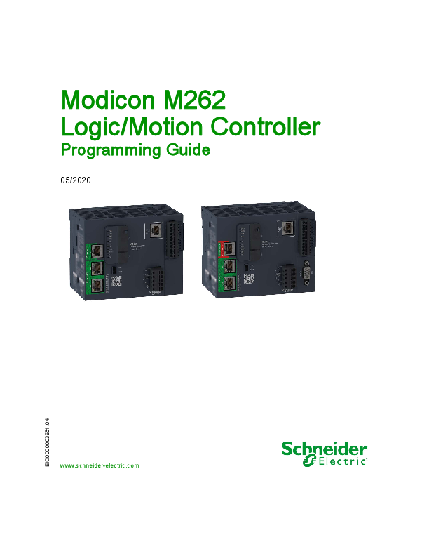 Modicon M262. Logic/Motion Controller. Programming Guide. 05/2020 ... terms, terminology, symbols and the corresponding descriptions in this manual, or.