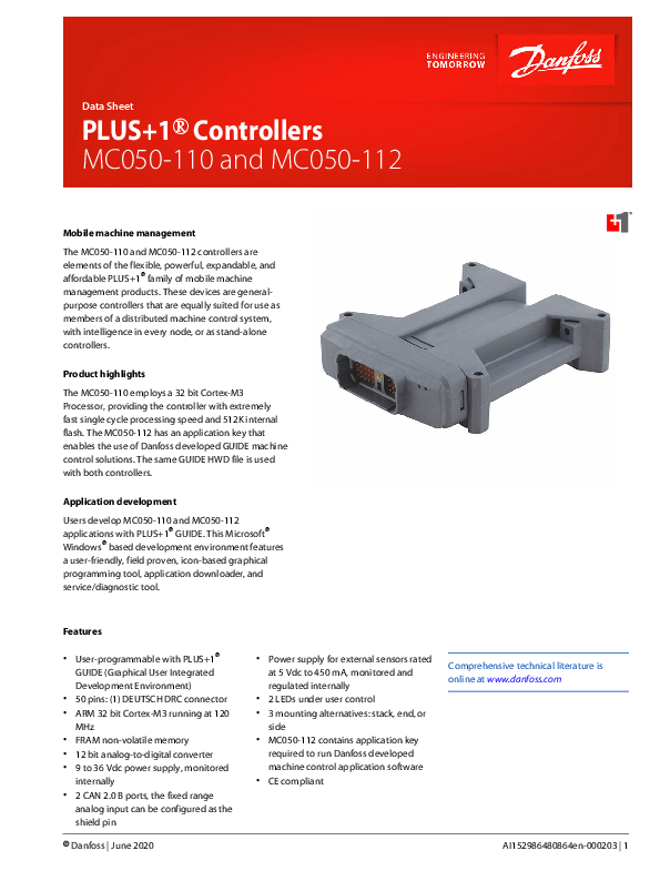 PLUS 1 MC050-110 and MC050-112 Controllers Data Sheet