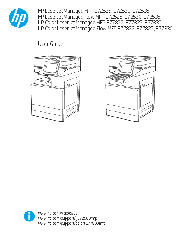 HP LaserJet Managed MFP E72525, E72530, E72535, HP LaserJet Managed Flow MFP E72525, E72530, E72535, HP Color LaserJet Managed MFP E77822, E77825, E77830, HP