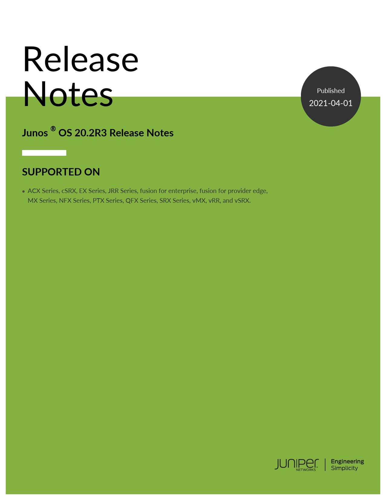 This document contains the release notes for Juniper Networks' Junos OS version 20.2R3. It serves as a comprehensive guide for users and administrators, detailing important information regarding the latest software release.