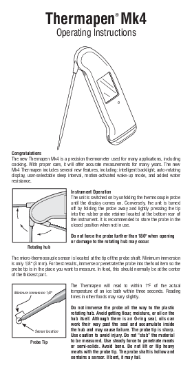 Congratulations The new Thermapen Mk4 is a precision thermometer used for many applications, including cooking. With proper care, it will offer accurate measurements for many years.