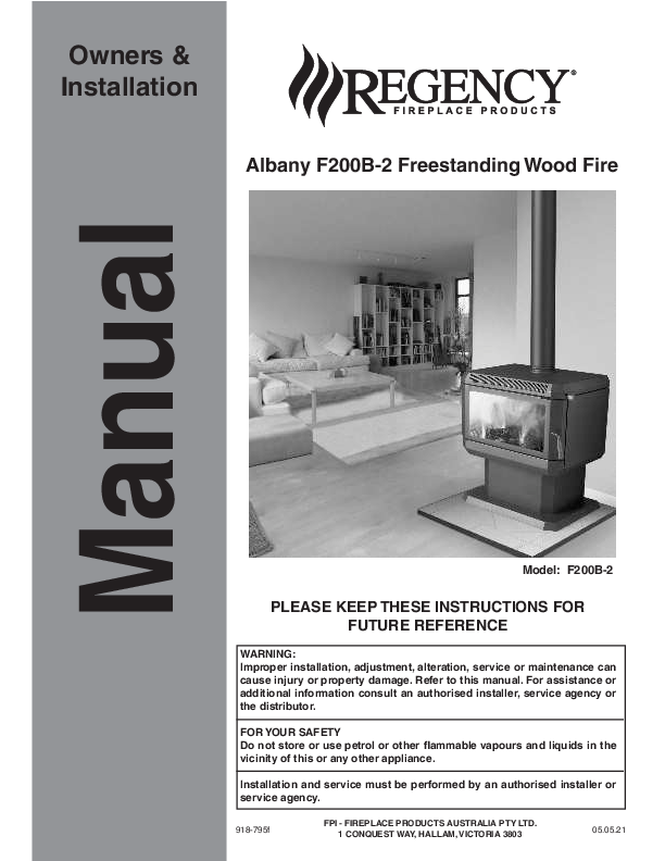 Installation Guide for REGENCY models including: Albany F200B-2, Freestanding Wood Fire