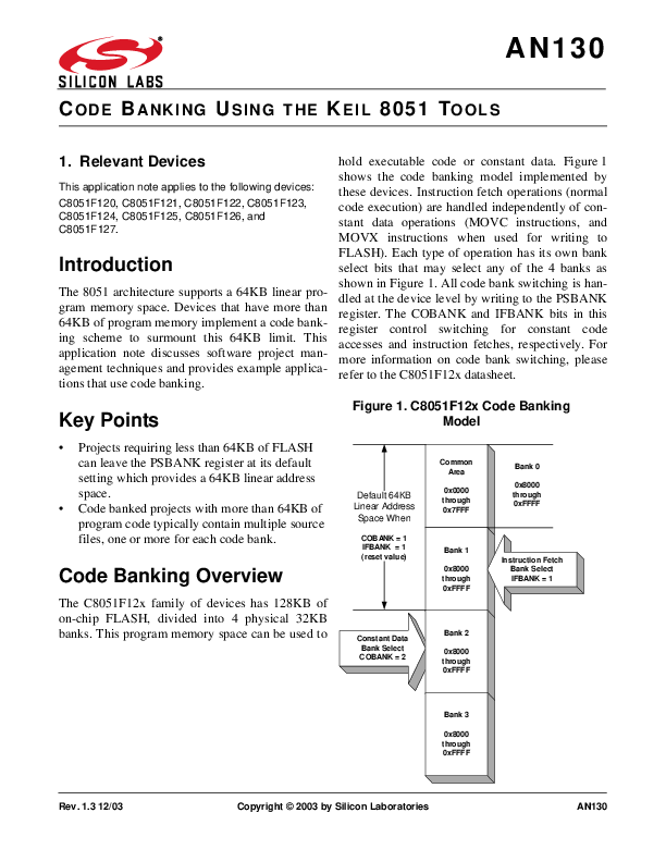 Managing the Instruction Fetch Bank. ... Step-by-step instructions on how to configure a Silicon Labs IDE project and a mVision2 project for code bank-ing are included in...