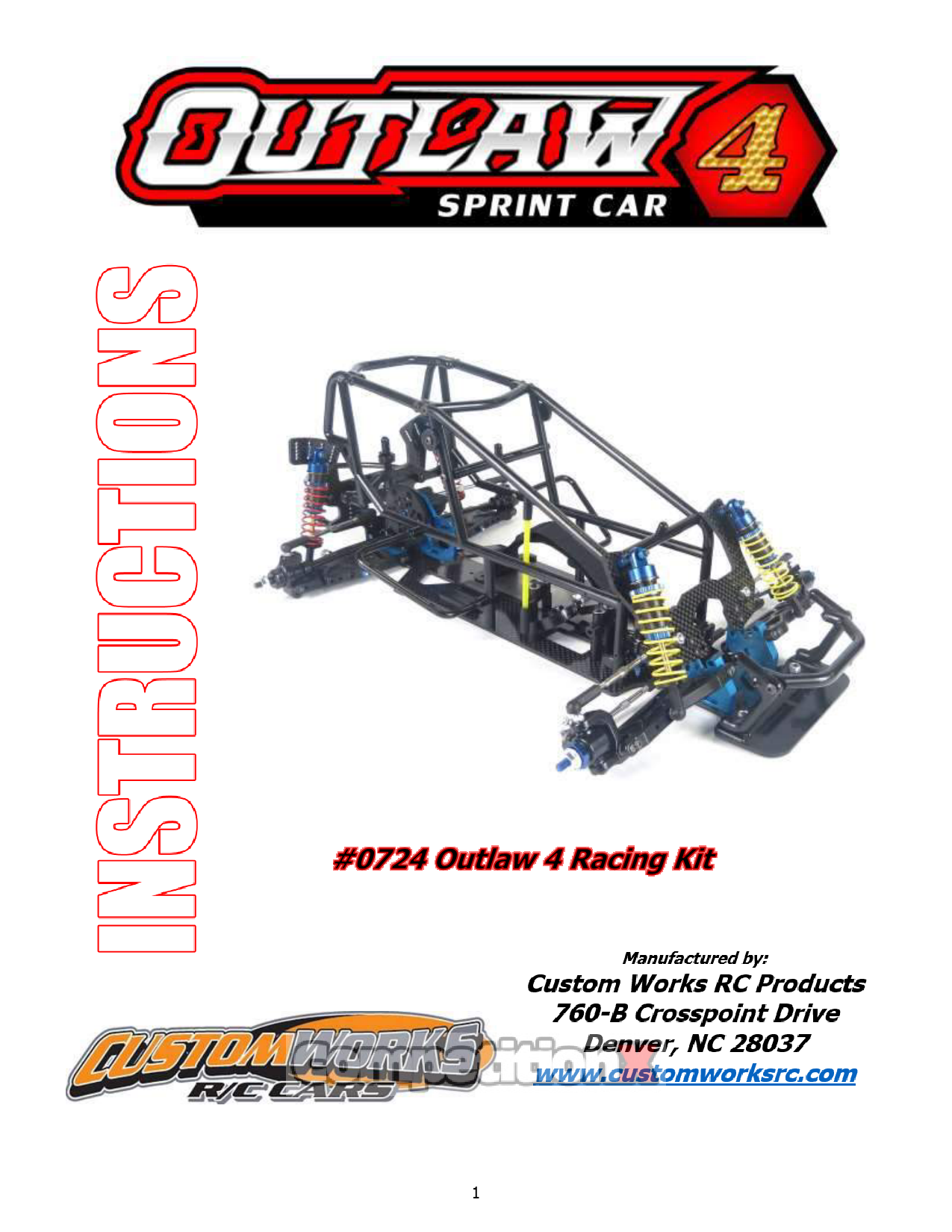 2 Thank you for purchasing the Outlaw 4 Sprint Car! The Outlaw sprint car platform has been developed for loose dirt buggy tire racing. In this kit you will find the 4th evolution of the car which features several improvements including a new 2.6 to 1 transmission and front and rear axles for hex wheels.