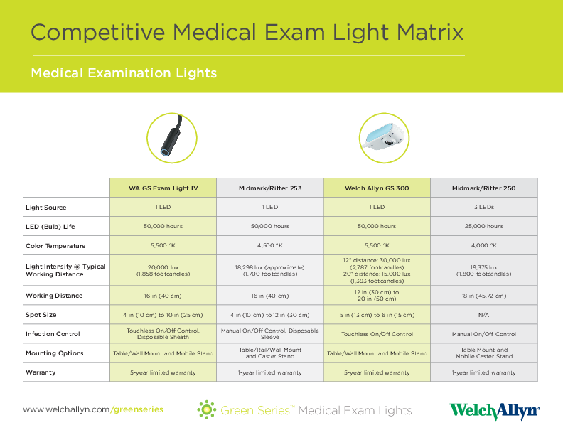 Title: Green Series Competitive Medical Exam Light Matrix, Specification Sheet Subject: This data/spec sheet provides important technical information associated with the Green Series Competitive Medical Exam Light Matrix