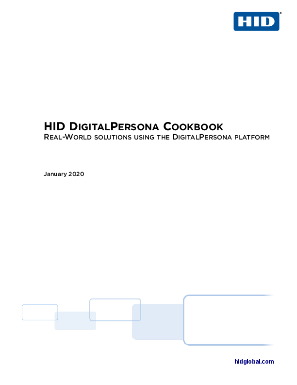 The HID DigitalPersona Solutions Cookbook is a series of recipes for cooking up solutions using the ingredients provided as part of the DigitalPersona solutions, products and components.