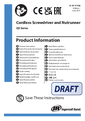 This document provides product information for the Ingersoll Rand QX Series Cordless Screwdriver and Nutrunner.
