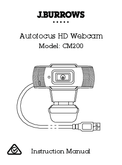 Autofocus HD Webcam Model: CM200 Instruction Manual Product Overview Indicator Light Built-in Microphone Six-layer Glass Lens Mounting Clip with Adjustable Angle Joints Built-in USB 2.0 Cable Installation 1 Peel off the protective film from the front of camera before use. 2 Connect the USB cable to computer/laptop, the device will connect automatically. 3 Mount the webcam on the top edge of display monitor, adjust the webcam to a desired angle by extending the joints of the mounting clip. 1 4 Note: If computer has a built-in camera this should be disabled from required communication programs to then select CM200 as default camera in the program settings. Specifications Model: CM200 Product code: JBCM200BK Maximum dynamic resolution:1920x1080 dpi Frame rate: 30 fps Automatic white balance, automatic colour correction Video format: MJPEG, YUY2 Lens: high-quality six-layer glass lens Built-in microphone Connection: USB 2.0, compatible with USB 1.0 and 3.0. Cable length: 150 cm Input power: DC 5V 1A Compatible systems: Windows® 8 or later, Mac OS X 10.13 or later Windows is a trademark of the Microsoft Corporation in the United States and other countries. Mac and macOS are trademarks of Apple Inc., registered in the U.S. and other countries. Package Contents Autofocus HD webcam x 1 Instruction manual x 1 2 Product Warranty  valid for Australian customers only Officeworks Ltd warrants that this product will be free from defects and work as intended for 8 years from the date of purchase by the original customer. If the product has any defects or does not work as specified during the Warranty Period, Officeworks will, at its election and at its expense, repair or replace the product. This warranty does not apply: · to cosmetic damage; · to damage caused by consumables used in connection with the product (such as batteries); · where the product has not been used in accordance with all provided instructions; · to damage arising from fair wear and tear; · where the product has not been subject to reasonable use; · where the product has been intentionally or negligently damaged; and/or · if the customer has attempted to repair the product. To make a claim under this warranty, please return your product with your receipt or proof of purchase to your nearest Officeworks store or contact 1300 633 423. This warranty is provided in addition to any rights you may be entitled to under the Competition & Consumer Act 2010. Our goods come with guarantees that cannot be excluded under the Australian Consumer Law. You are entitled to a replacement or refund for a major failure and compensation for any other reasonably foreseeable loss or damage. You are also entitled to have the goods repaired or replaced if the goods fail to be of acceptable quality and the failure does not amount to a major failure. 3Adobe PDF library 15.00 Adobe Illustrator 24.1 (Macintosh)