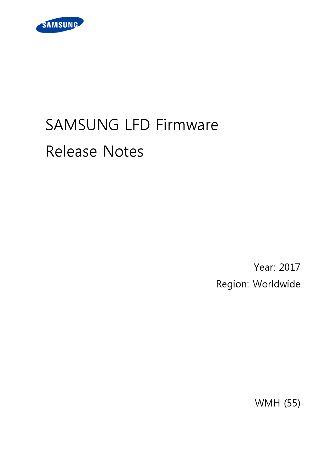 This Release note provides a brief summary of the feature additions and issues resolved in SAMSUNG LFD firmware release starting with release 1001.0. The sections in this document are organized according to release date, with the most recent releases listed first.