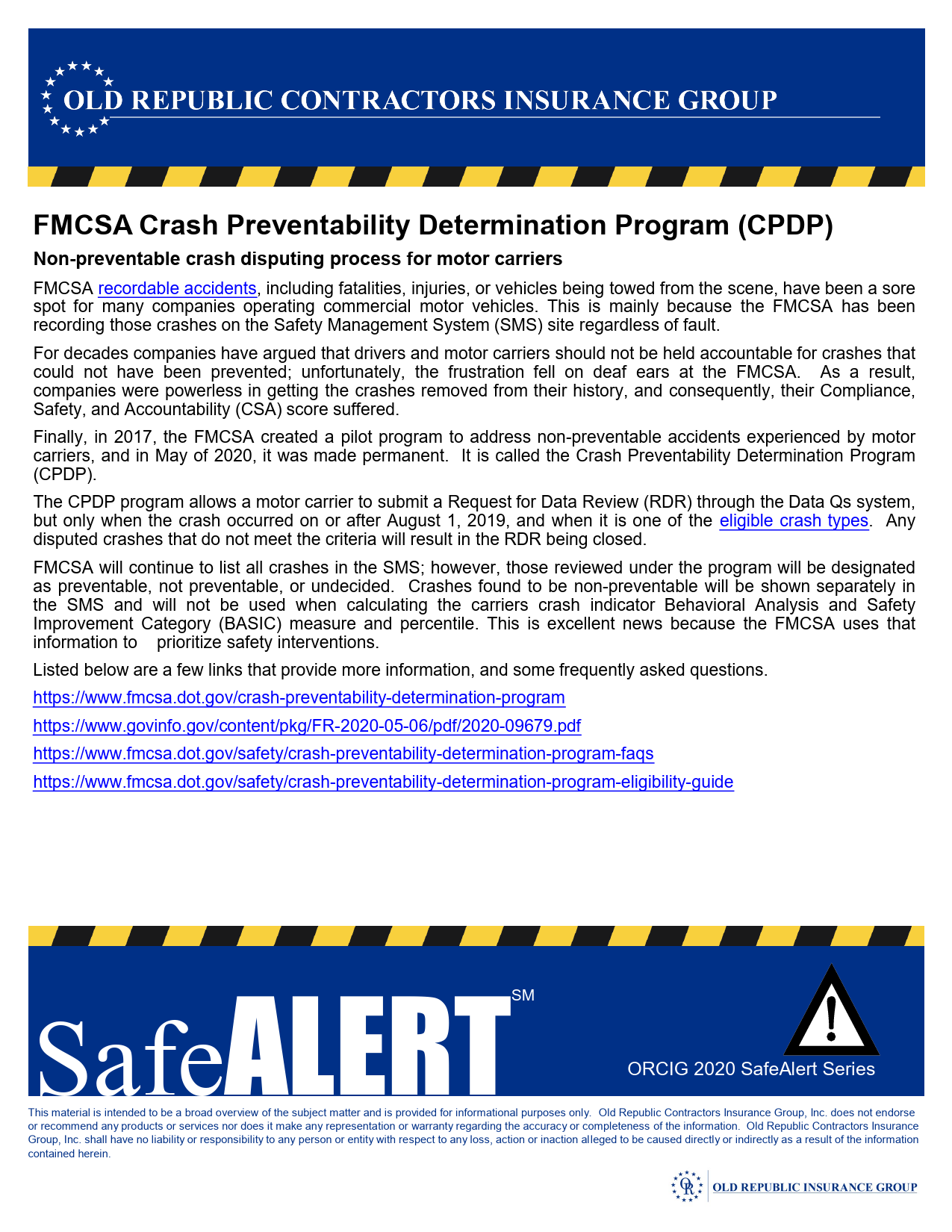 ORCIG SafeALERT FMCSA Crash Preventability Determination Program FMCSA Crash Preventability Determination Program (CPDP)