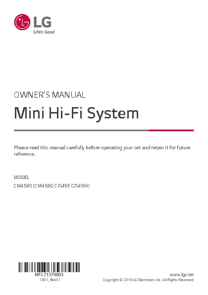 Models: Mini Hi-Fi System, CM4590, CJS45F, CJS45W