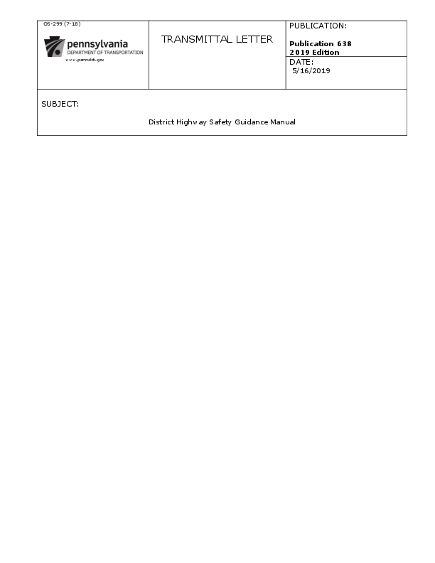 Guidance Manual. May, 2019. Comprehensive Table of Contents. Page i. Pennsylvania Department of Transportation. District Highway Safety ...