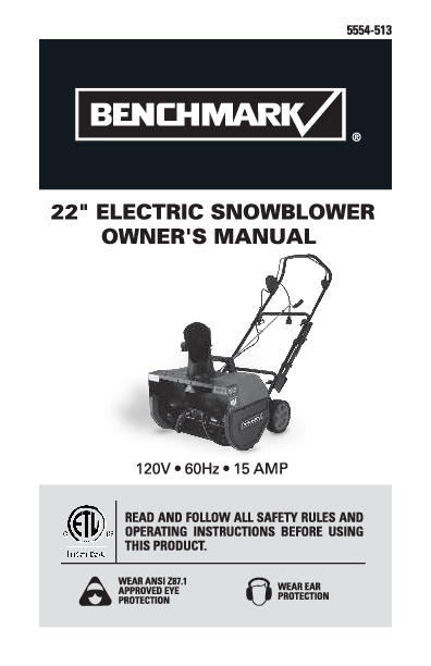 BENCHMARK 22" ELECTRIC SNOWBLOWER OWNER'S MANUAL