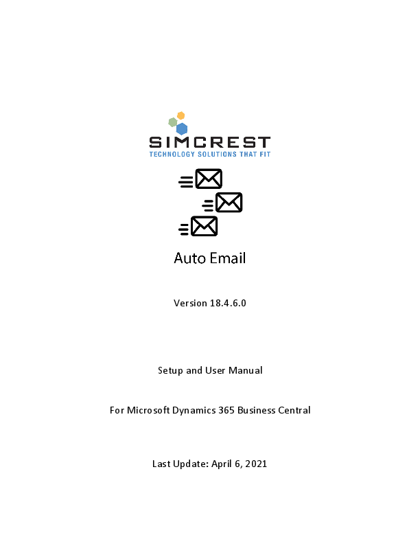 Apr 6, 2021 — Version 18.4.6.0. Setup and User Manual. For Microsoft Dynamics 365 Business Central. Last Update: April 6, 2021 ...