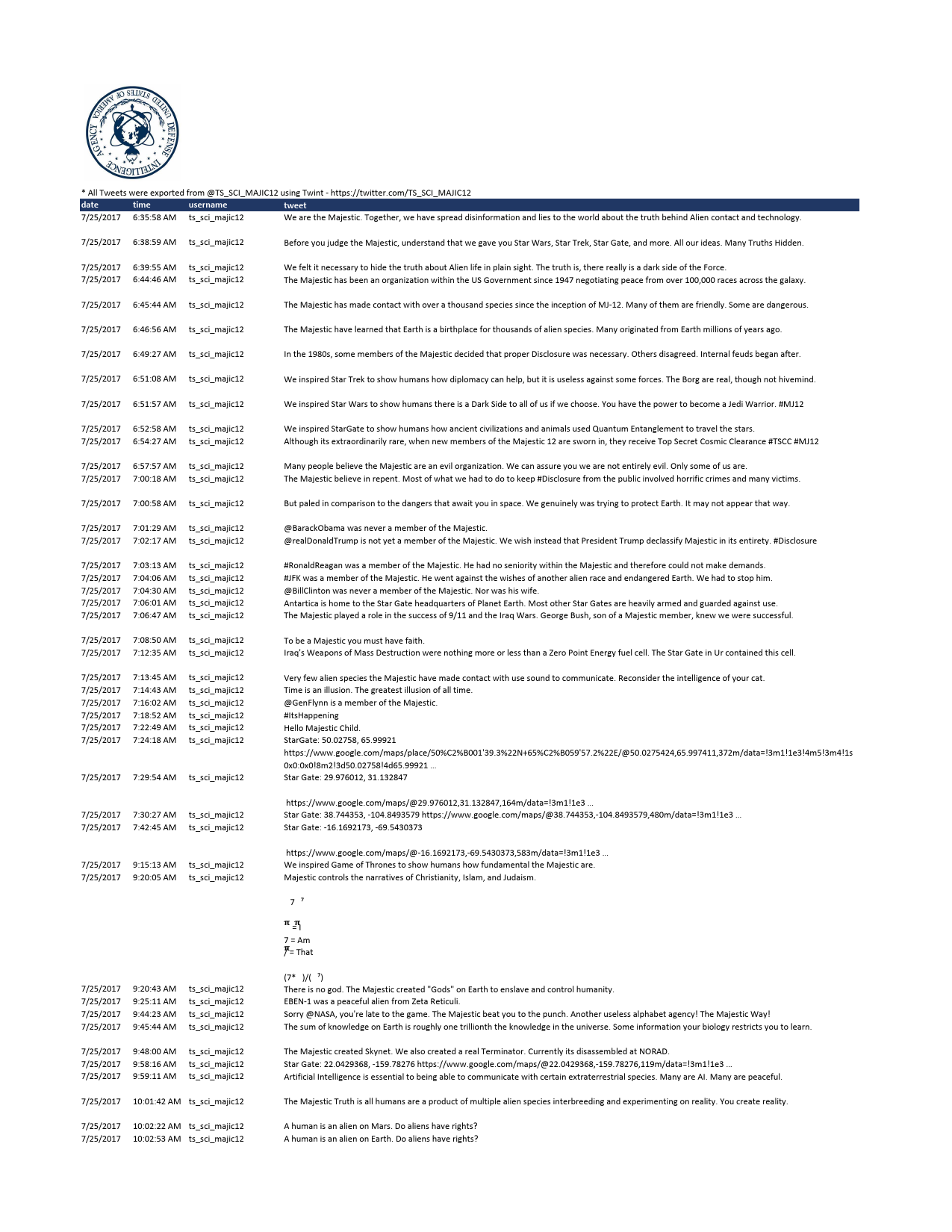 MJ12 July2017 March2020 FULLz * All Tweets were exported from @TS_SCI_MAJIC12 using Twint - https://twitter.com/TS_SCI_MAJIC12