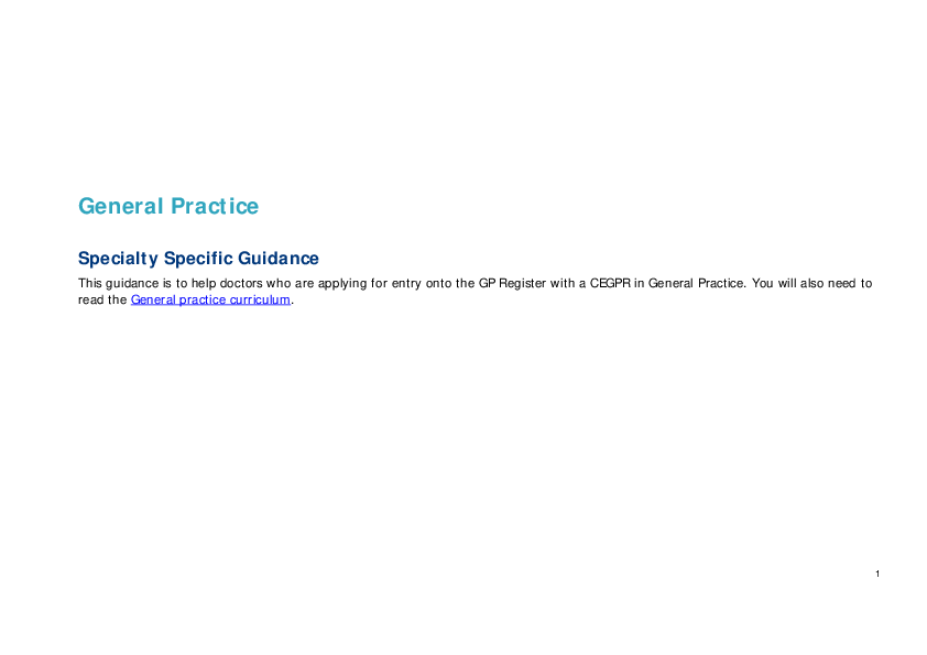 This guidance is to help doctors who are applying for entry onto the GP Register with a CEGPR in General Practice. You will also need to read the General practice curriculum.