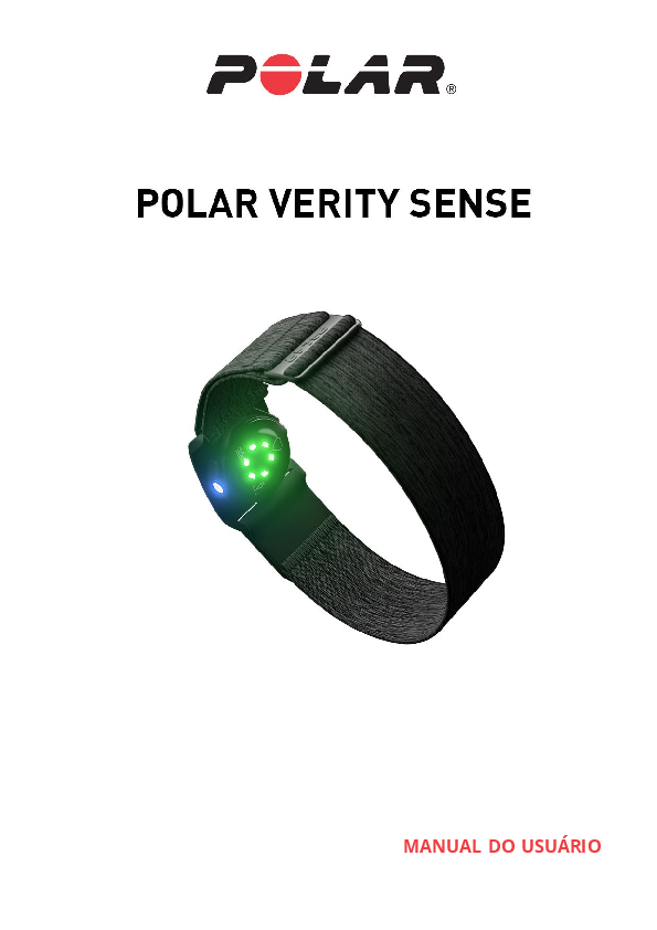 MANUAL DO USUÁRIO ÍNDICE Índice 2 Manual do usuário do Polar Verity Sense 4 Introdução 4 Aproveite o Polar Verity Sense ao máximo 5 Aplicativo Polar Flow 5 Serviço web Polar Flow 5 Primeiros passos 6 Configuração do Polar Verity Sense 6 Escolha uma opção de configuração 6 Opção A: Configurar usando o celular e o aplicativo Polar Flow 6 Opção B: Configurar usando o computador via FlowSync 6 Funções do botão e dos LEDs 8 Funções dos botões 8 Cores dos LEDs e seus significados 8 Pareamento 10 Parear com o aplicativo Polar Flow 10 Antes de parear um celular: 10 Para parear um celular: 10 Parear com um relógio Polar 10 Definições (Configurações) 11 Configurações no aplicativo Polar Flow 11 Atualização do firmware 12 Com o celular ou tablet 12 Com o computador 12 Redefinição do sensor 13 Para redefinir as configurações de fábrica do sensor 13 Treino 14 Como usar seu Verity Sense 14 Como usar no braço com a braçadeira 14 Como usar com óculos de natação 14 Outras opções para usar o sensor 15 Escolha do modo de treino 15 Treino no modo de frequência cardíaca 16 Treino no modo de gravação 17 Treino no modo de natação 18 Polar Flow 20 Aplicativo Polar Flow 20 Dados de treino 20 Compartilhamento de imagem 20 Iniciar o uso do aplicativo Polar Flow 20 Serviço web Polar Flow 21 Diário 21 Relatórios 21 Programas 21 Sincronização 21 Sincronizar com o aplicativo móvel Flow 21 Sincronizar com o serviço web Flow via FlowSync 22 Informações importantes 23 Bateria 23 Carregamento da bateria 23 2 Cuidados com seu Polar Verity Sense 24 Mantenha seu Verity Sense limpo 24 Armazenamento 25 Reparos 25 Precauções 26 Interferência durante o treino 26 Sua saúde e seu treino 26 Aviso 27 Como utilizar seu produto Polar com segurança 27 Especificações técnicas 28 Polar Verity Sense 28 Software Polar FlowSync 29 Compatibilidade da Aplicação Móvel Polar Flow 29 Resistência dos produtos Polar à água 29 Informações regulatórias 30 Garantia limitada internacional Polar 30 Aviso de isenção de responsabilidade 31 3 MANUAL DO USUÁRIO DO POLAR VERITY SENSE Este manual do usuário ajuda você a começar a usar seu novo Polar Verity Sense. Para ver tutoriais em vídeo e perguntas frequentes, acesse support.polar.com/br/verity-sense. INTRODUÇÃO Parabéns pelo seu novo Polar Verity Sense! O Polar Verity Sense é um sensor óptico versátil e de alta qualidade que mede a frequência cardíaca no braço ou na têmpora. É uma ótima alternativa às cintas peitorais de frequência cardíaca e aos dispositivos de pulso. Você pode usá-lo com a braçadeira, a presilha para tira de óculos de natação ou simplesmente colocá-lo em qualquer lugar confortável e firme contra a pele. O Polar Verity Sense oferece a você a máxima liberdade de movimento e funciona com inúmeros esportes diferentes. Como destaque, o Polar Verity Sense registra sua frequência cardíaca, distância e ritmo quando você pratica natação na piscina. Você pode registrar seus treinos na memória interna do sensor e depois transferir os dados para o seu celular ou conectálo a um dispositivo compatível e acompanhar sua frequência cardíaca em tempo real durante o treino. O Polar Verity Sense transfere dados via Bluetooth® e ANT+. Você pode usar o sensor com vários dos principais aplicativos de exercício físico, incluindo o aplicativo Polar Flow, bem como com dispositivos de treino compatíveis com Bluetooth e ANT+. Você pode transmitir sua frequência cardíaca simultaneamente para dois dispositivos Bluetooth receptores diferentes e para quantos dispositivos ANT+ desejar. O Polar Verity Sense vem com uma confortável braçadeira que pode ser lavada à máquina, uma presilha para tira de óculos de natação, um carregador USB e um estojo de armazenamento. 4 APROVEITE O POLAR VERITY SENSE AO MÁXIMO Para aproveitar ao máximo os recursos do Verity Sense, conecte-o ao Polar Flow, nosso aplicativo e serviço Web gratuito. Quando o sensor está conectado ao Polar Flow, você pode gravar sua sessão de treino usando apenas o sensor e transferir seus dados de treino para o aplicativo ou serviço Web Flow depois. Você também receberá as atualizações mais recentes para o sensor pelo Polar Flow. Para conectar seu Verity Sense ao Polar Flow, configure-o com o aplicativo móvel Polar Flow ou no serviço Web Polar Flow. APLICATIVO POLAR FLOW Baixe o aplicativo Polar Flow da App Store® ou do Google PlayTM. Sincronize seu Verity Sense com o aplicativo após o treino e receba um resumo geral instantâneo e feedback sobre os resultados do treino e seu desempenho. SERVIÇO WEB POLAR FLOW Sincronize os seus dados de treino com o serviço Web Polar Flow com o software FlowSync no seu computador, ou pelo aplicativo Polar Flow. No serviço web, você pode planejar seu treino, acompanhar suas conquistas, obter orientações e ver análises detalhadas dos seus resultados de treino. Encontre tudo isso em flow.polar.com. 5 PRIMEIROS PASSOS CONFIGURAÇÃO DO POLAR VERITY SENSE Recomendamos carregar a bateria antes de começar a usar o Verity Sense. Se a bateria estiver totalmente descarregada, poderá levar vários minutos para que o carregamento comece. Consulte Baterias para obter informações detalhadas sobre o carregamento da bateria. Observe que quando a bateria do Verity Sense tem carga suficiente, ele aparece para todos os receptores compatíveis próximos. ESCOLHA UMA OPÇÃO DE CONFIGURAÇÃO A. No celular: A configuração móvel é conveniente quando você não tem acesso a um computador com porta USB, mas pode demorar mais tempo. Esse método requer uma conexão com a Internet. B. No computador: A configuração no computador via cabo é mais rápida e permite carregar o Polar Verity Sense ao mesmo tempo, mas requer um computador. Esse método requer uma conexão com a Internet. Preencha todos os detalhes físicos necessários para ter dados de treino precisos imediatamente e obten