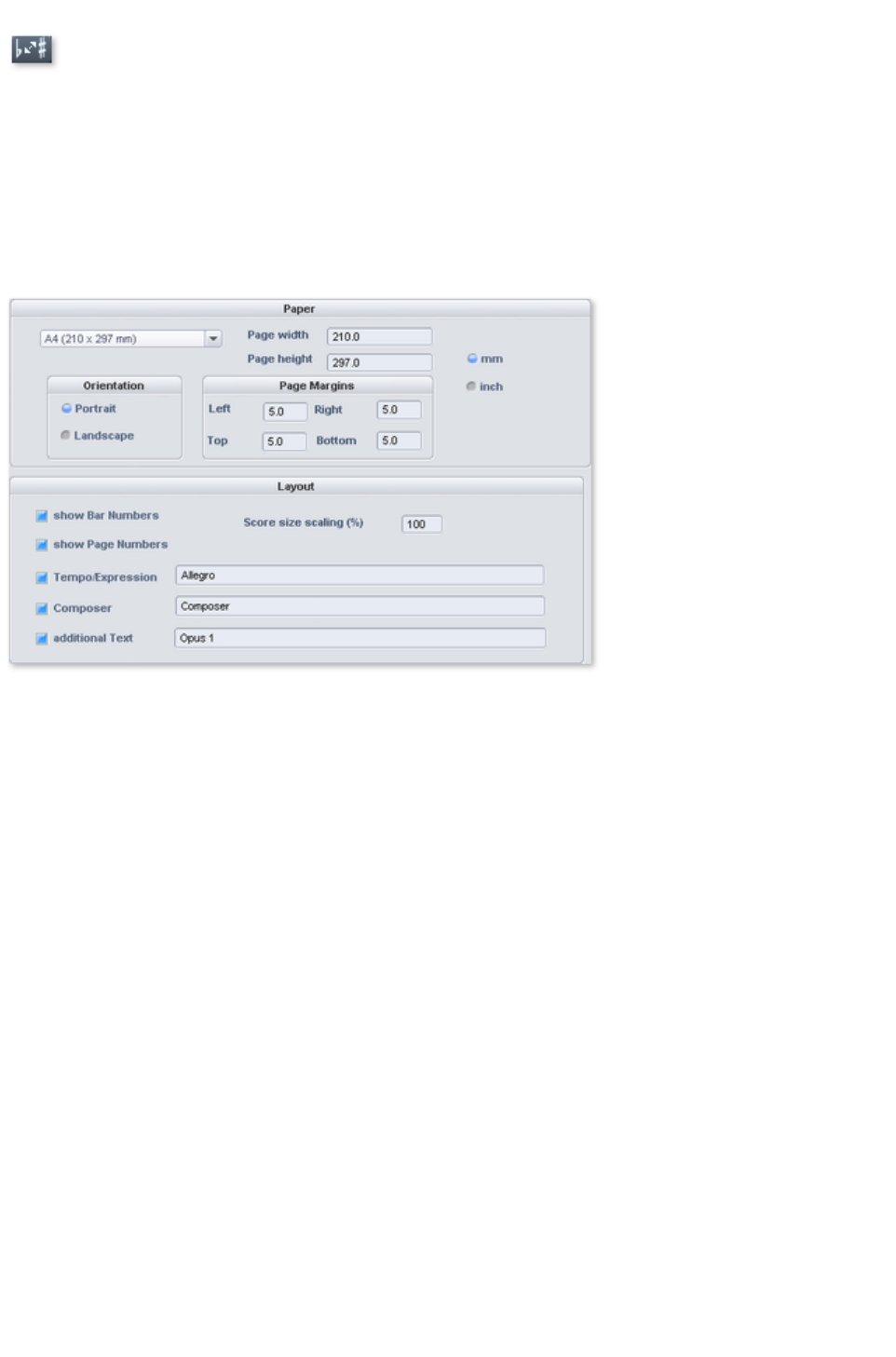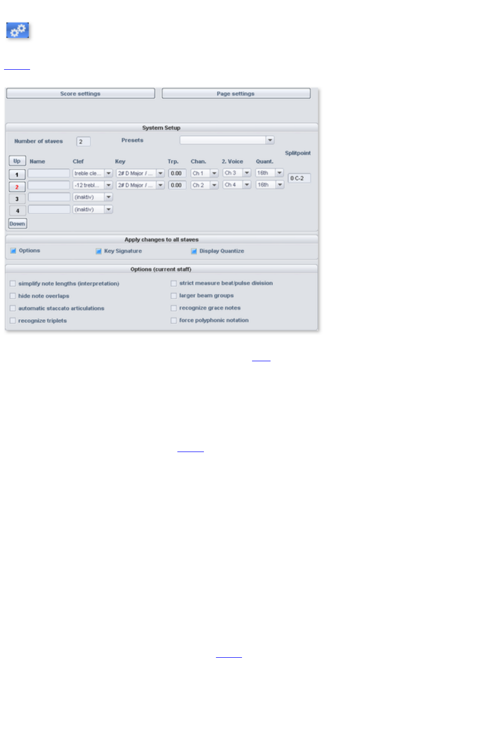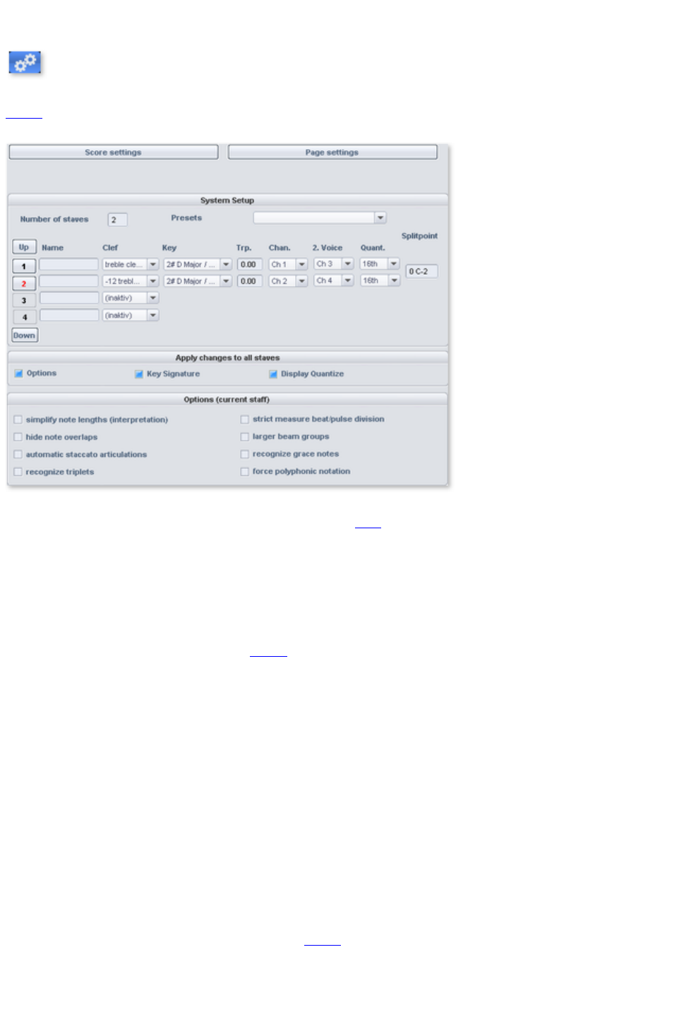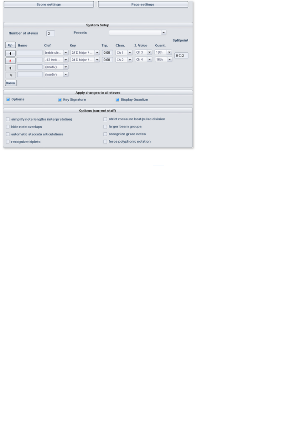 - MIDI score settings dialog
