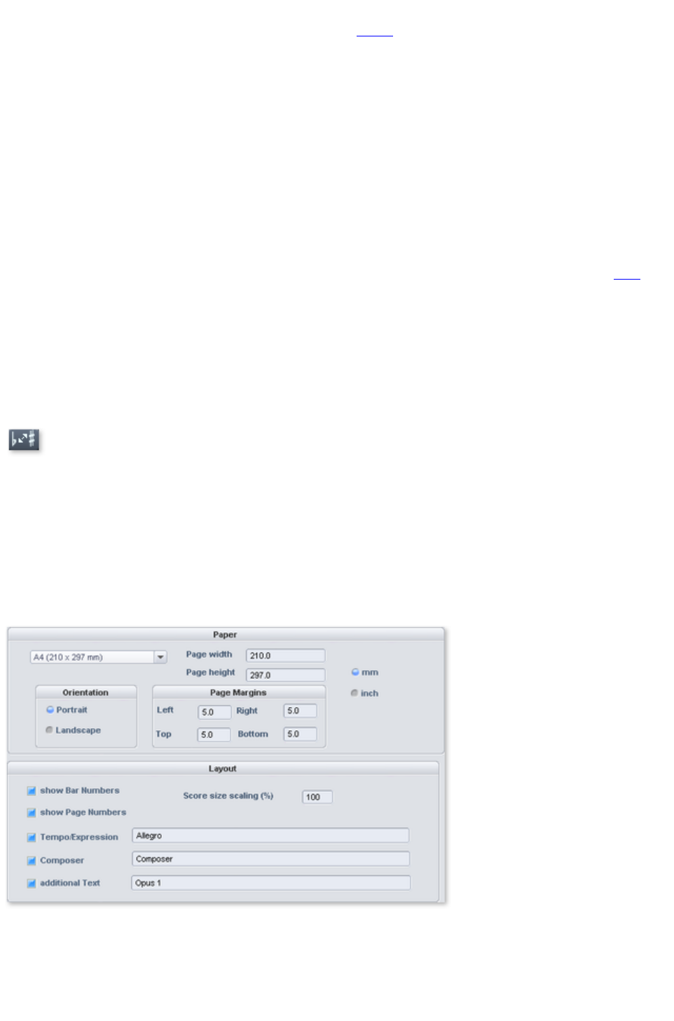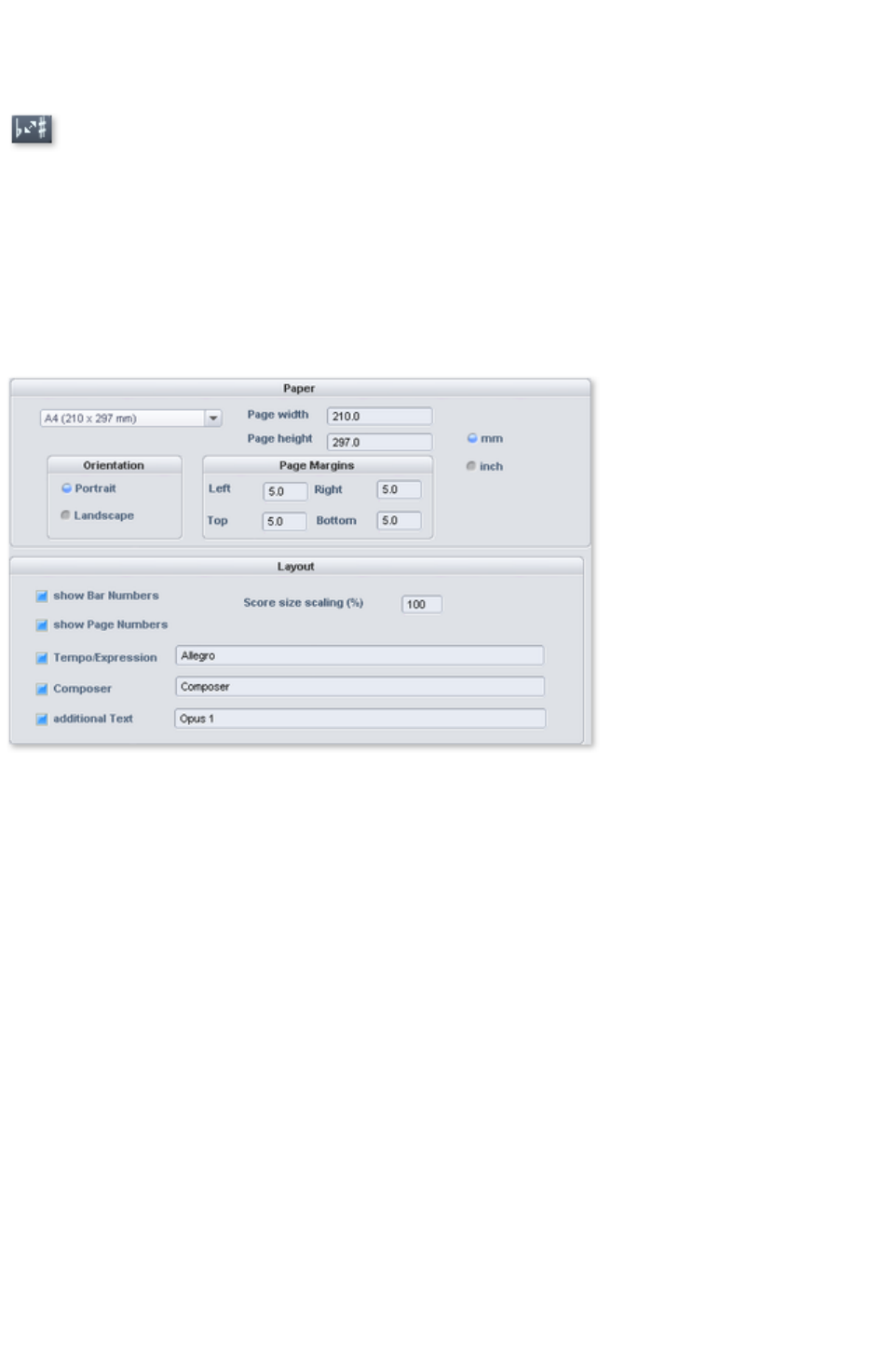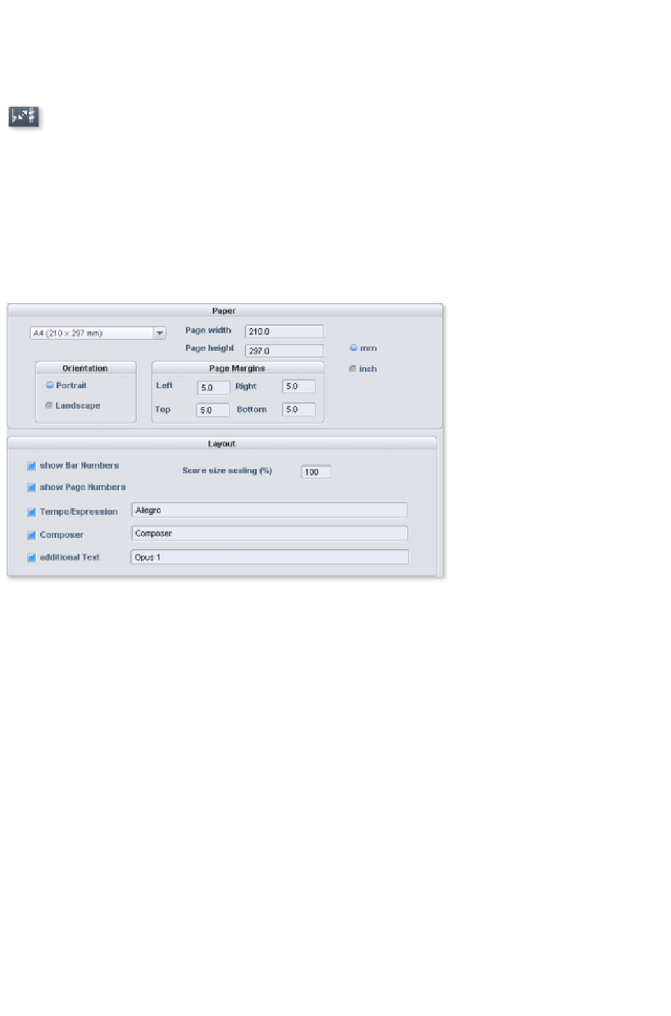 - MIDI score settings dialog