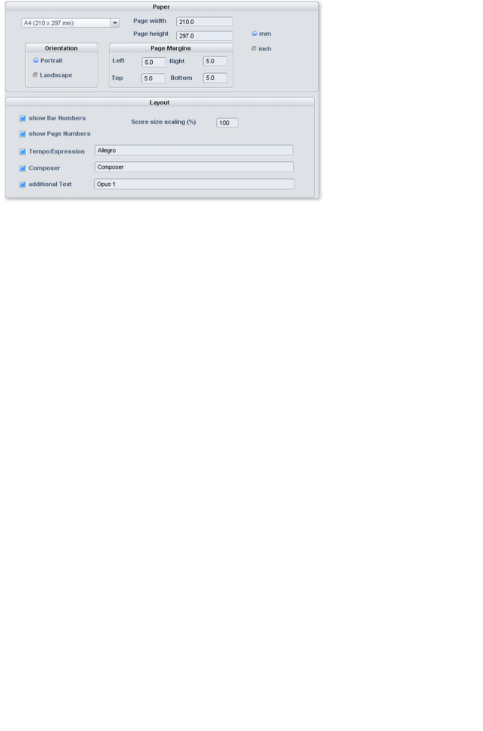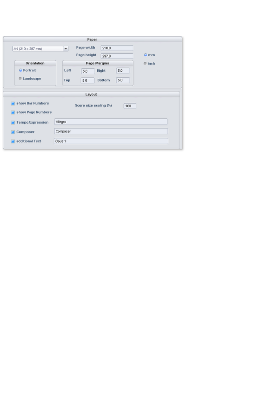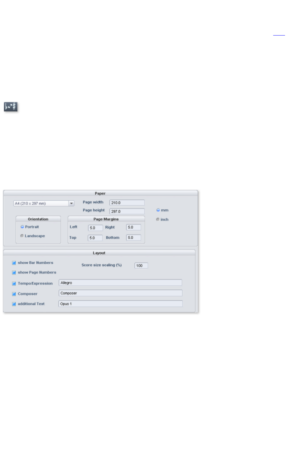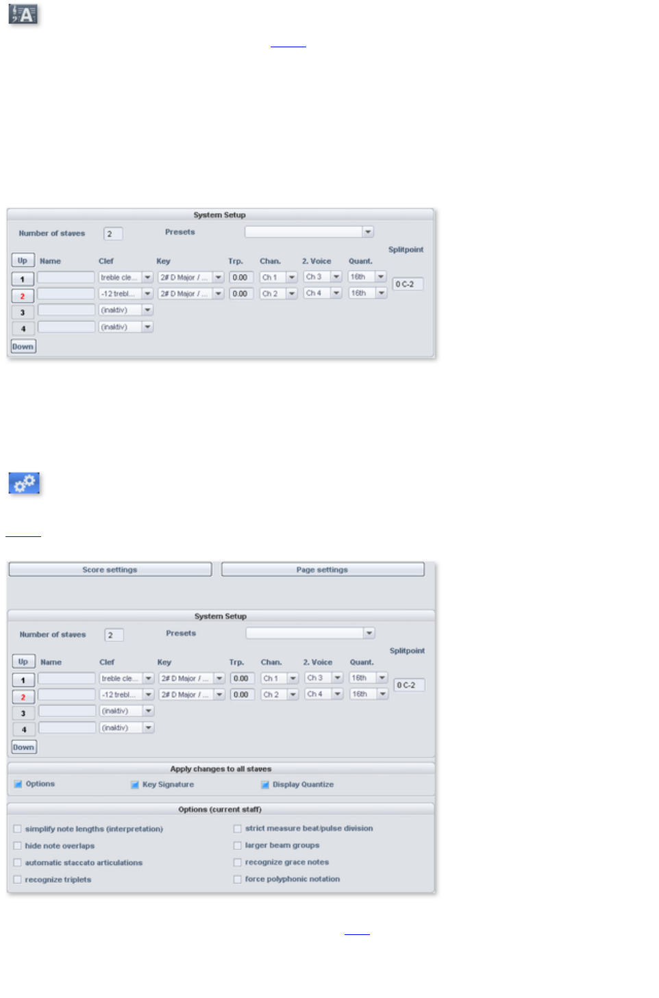 - MIDI score settings dialog
