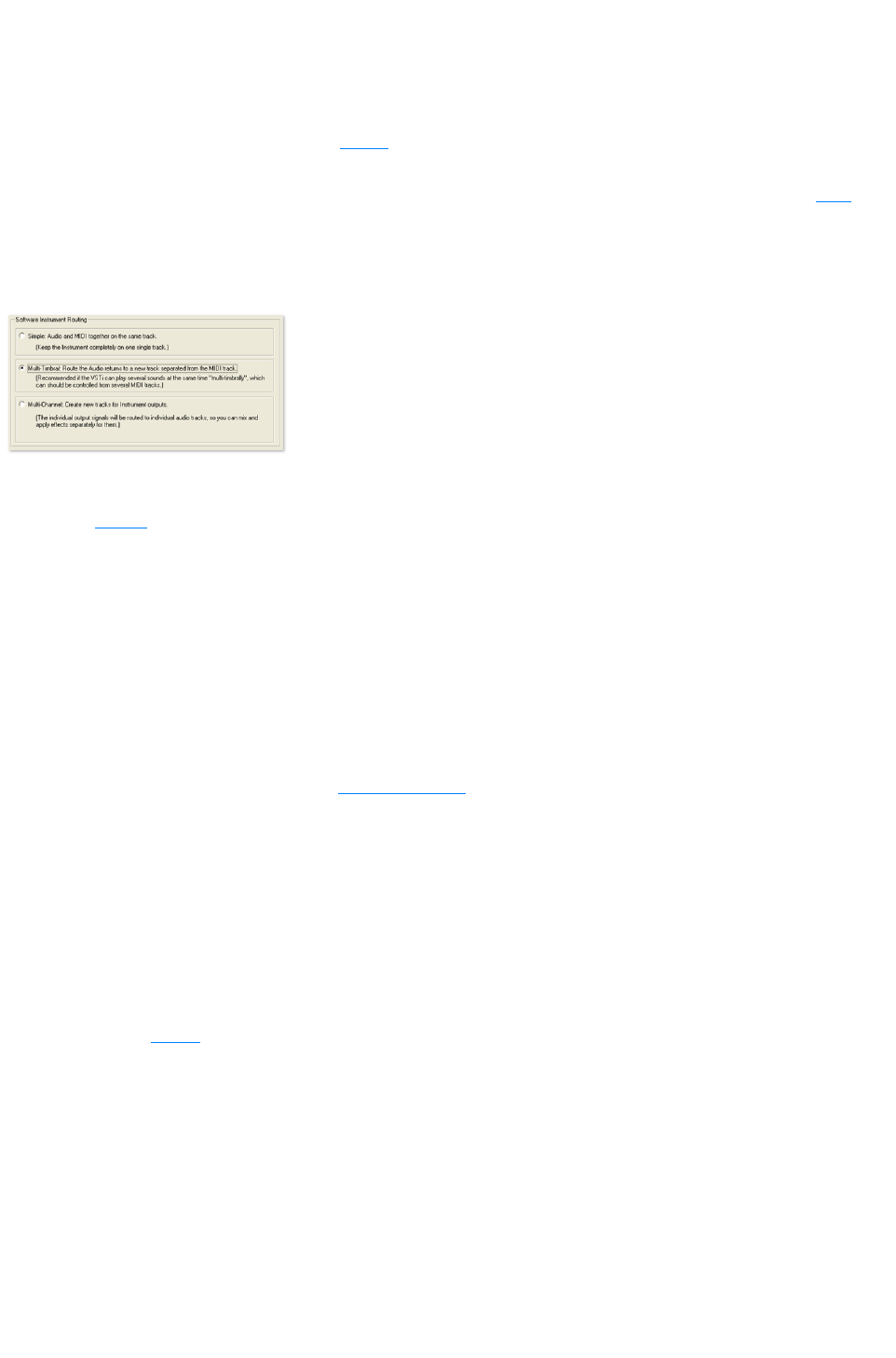 - Routing settings during software instrument loading
