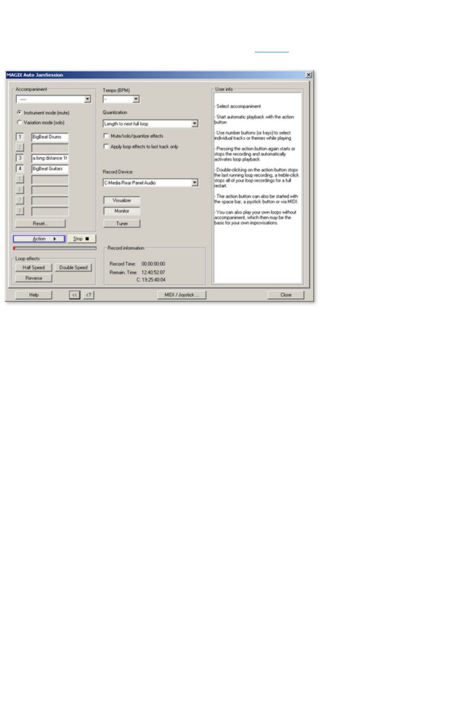 The recording is prepared, all buffers will be loaded. A requester will appear enabling you to instantly