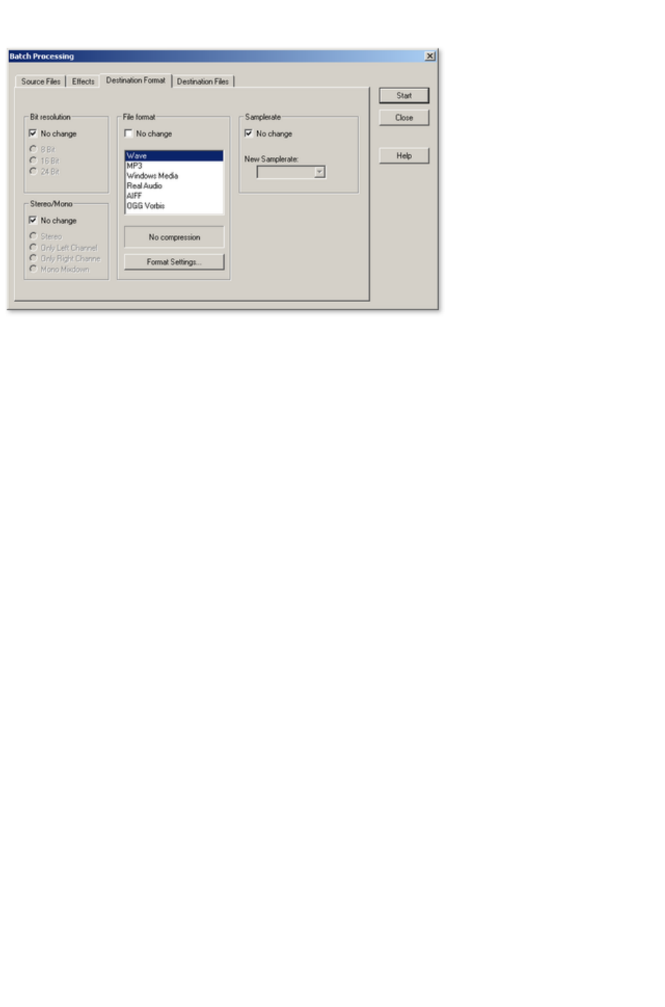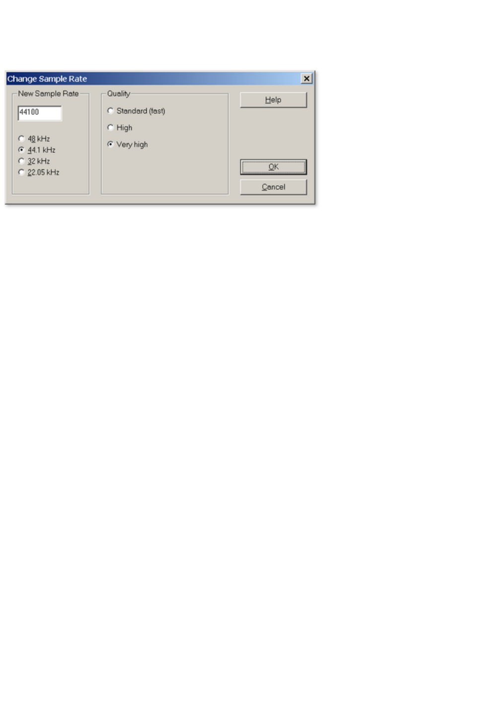 This option allows you to select the sample rate of the recording. Your audio card must support the